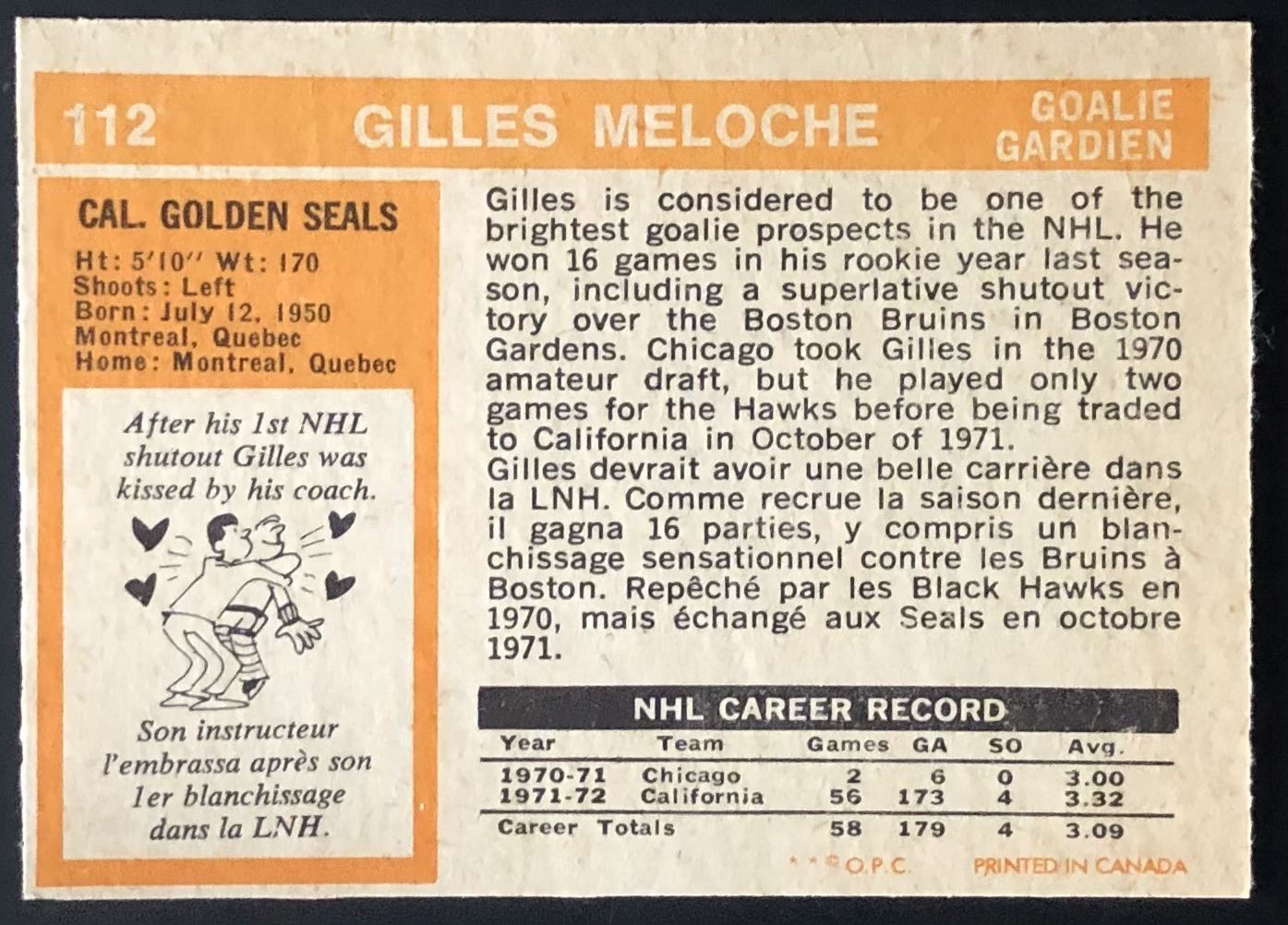Card #112 hockey, NHL, vintage, OPC, rookie