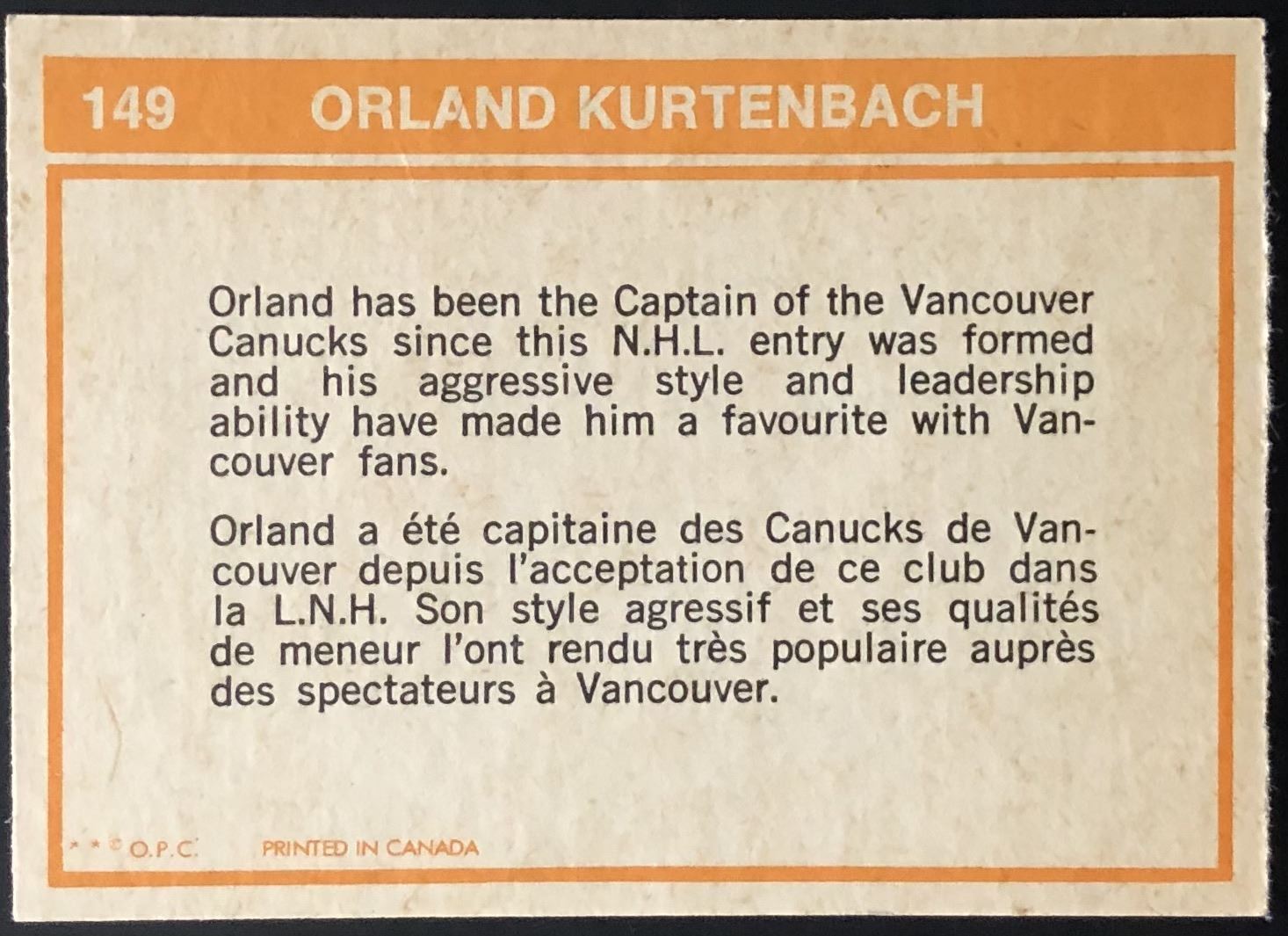 Card #149 hockey, NHL, vintage, OPC, hall of fame