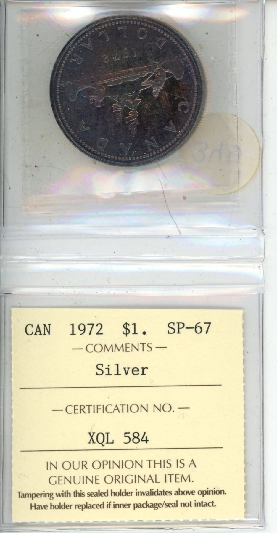 1972 Canada One Dollar - SP-67 - Silver - XQL 584 - ICCS.