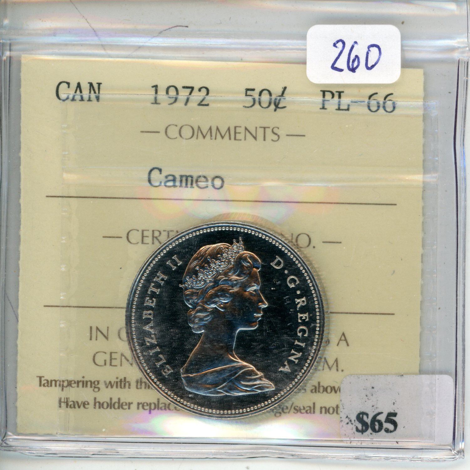 1972 Canadian 50 Cents, ICCS certified & graded PL-66 Cameo. High grade.