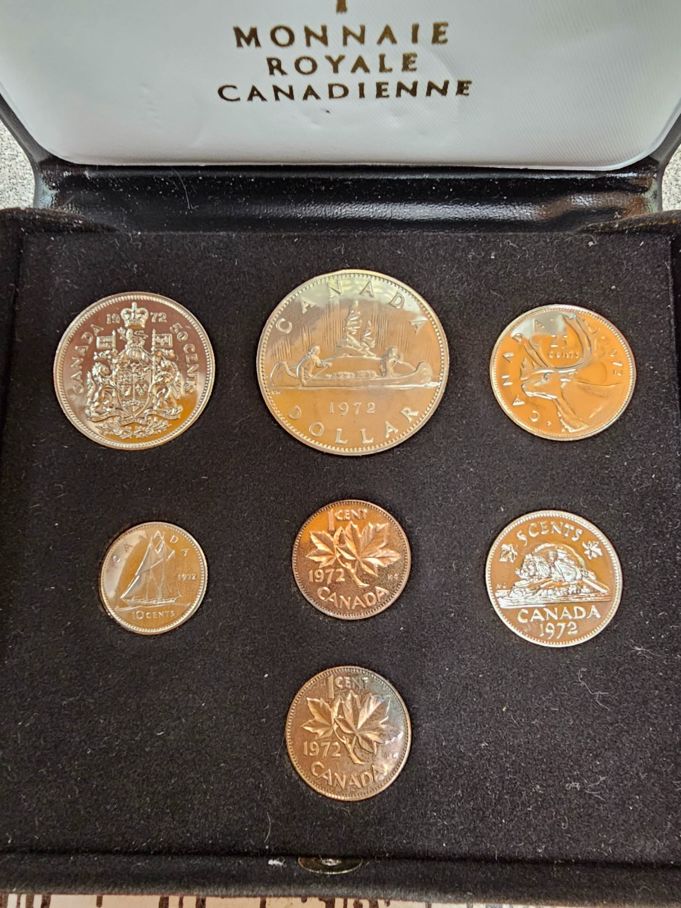 1972 Double Cent Custom Set. 7-coin set housed in original red vinyl case with Coat of Arms & CANADA stamped in Gold.