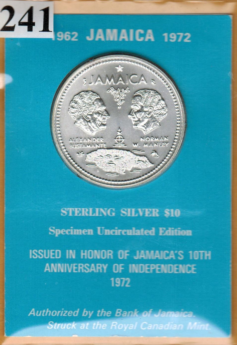 1972 JAMAICA $10 STERLING SILVER SPECIMEN COIN - Actual Silver Weight 1.4631 Oz