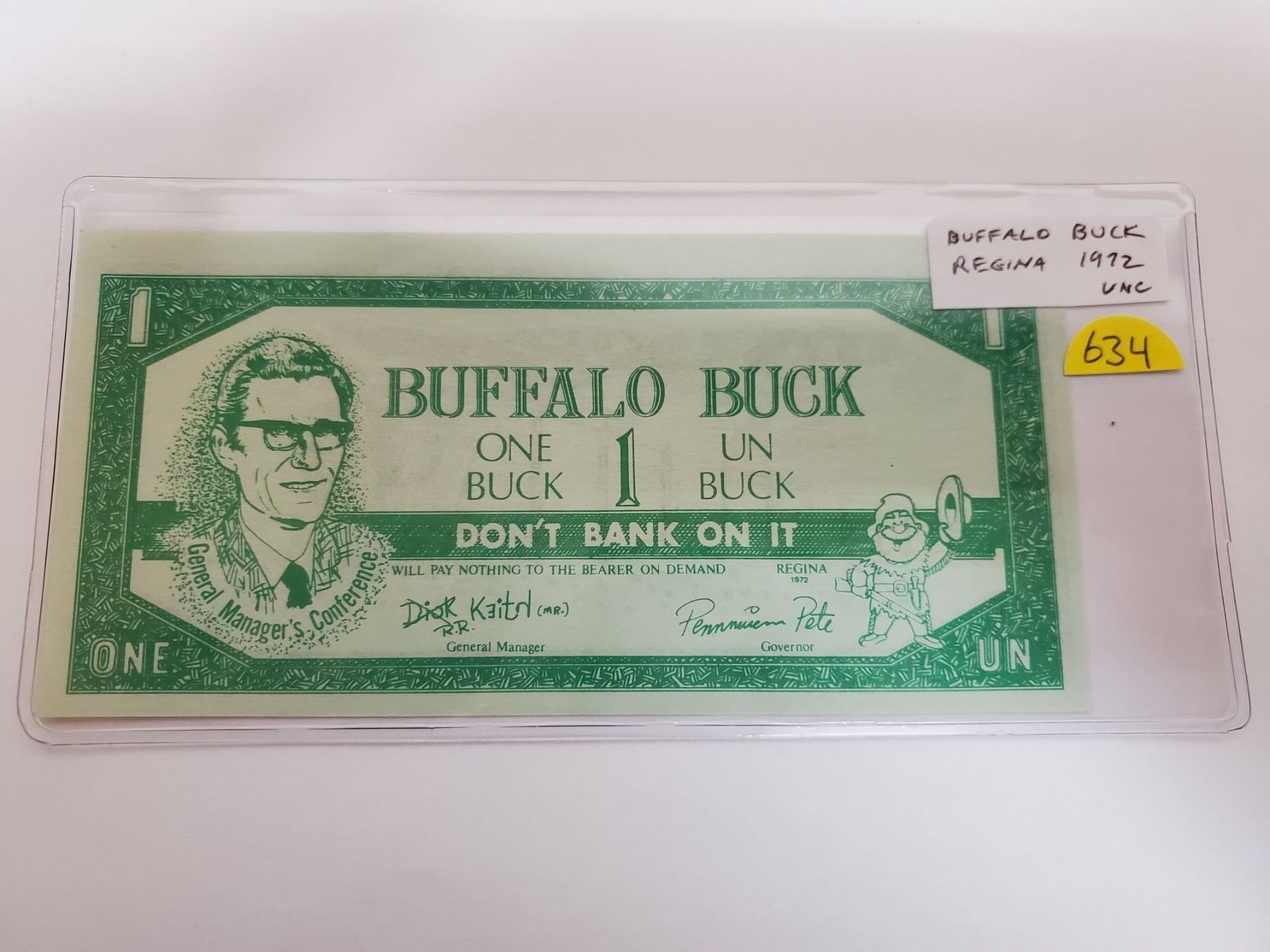 1972 Regina Buffalo Buck $1 Scrip. Signed by Pemmican Pete. Unc.