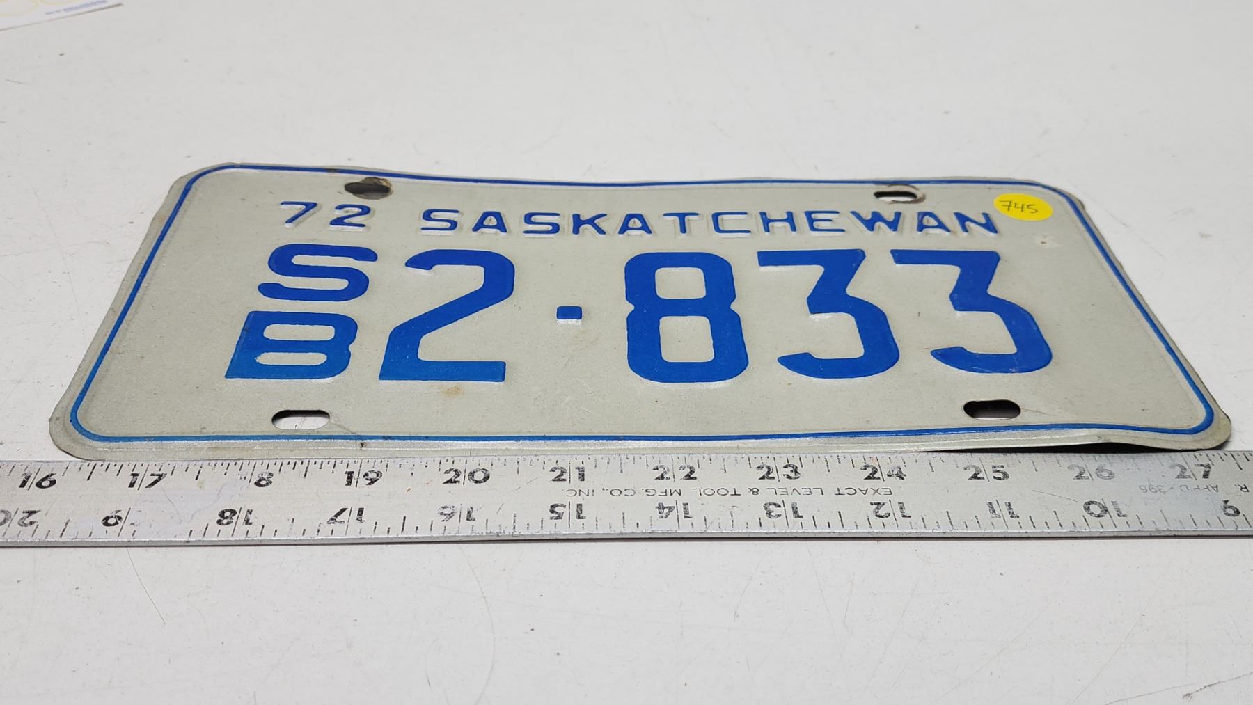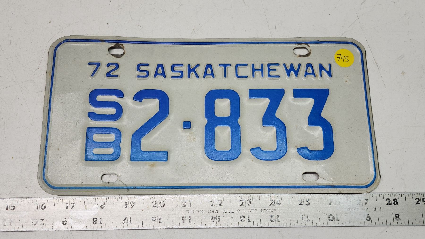 1972 Saskatchewan license plate - S/B 2-833