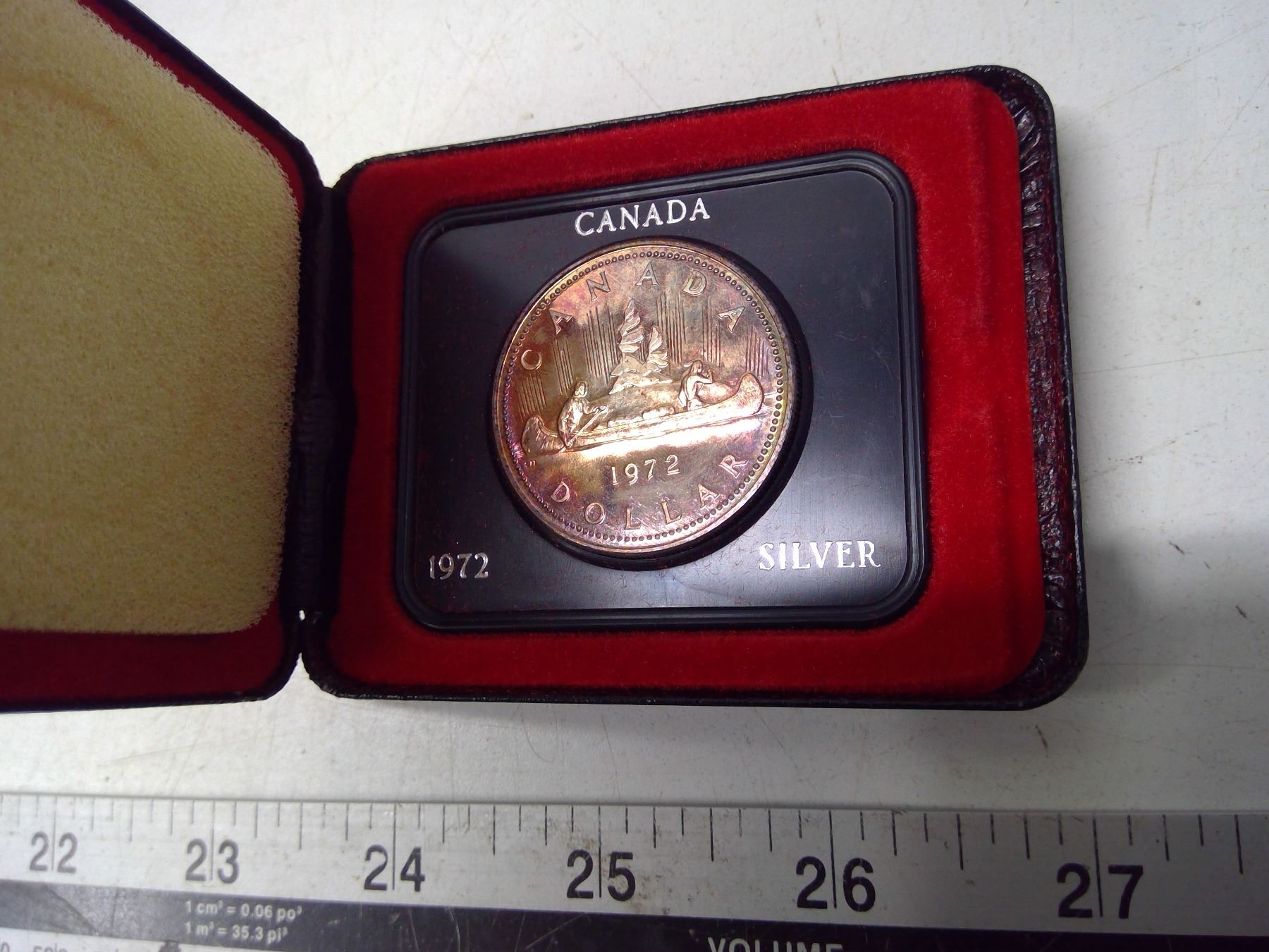 1972 Silver Dollar. Beautifully Toned. Specimen. Housed in its original black Royal Canadian Mint case of issue.