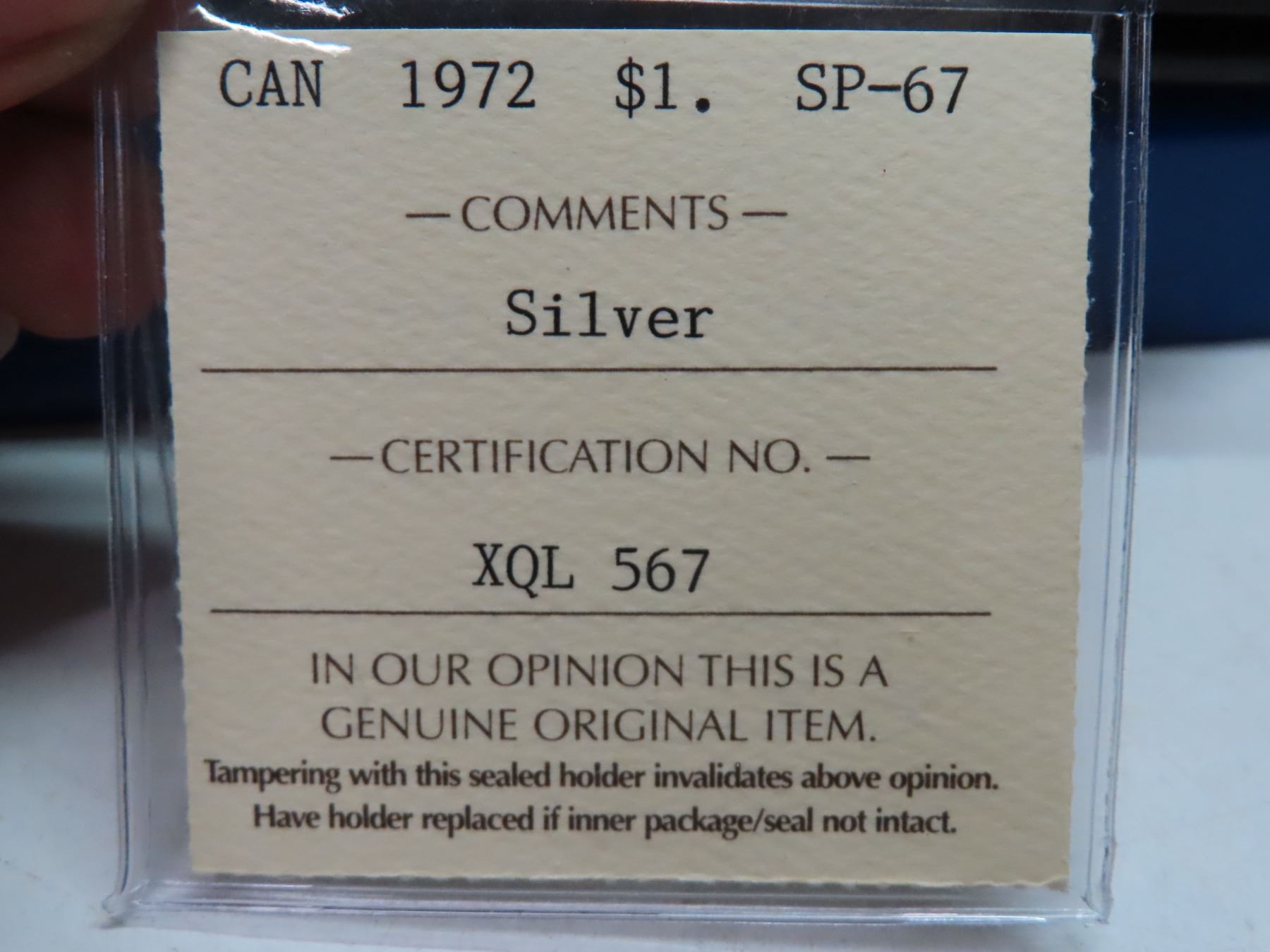 1972 canadian silver ICCS $1 coin SP-67