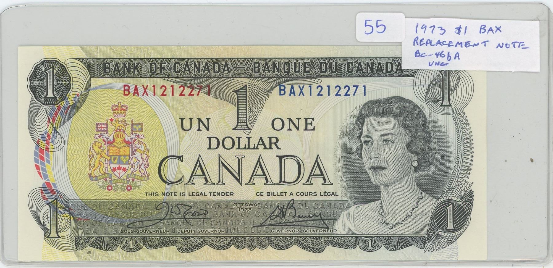 1973 $1 BAX Replacement Note. Serial Number BAX1212271. Crow-Bouey signatures. BC-46bA. Unc.