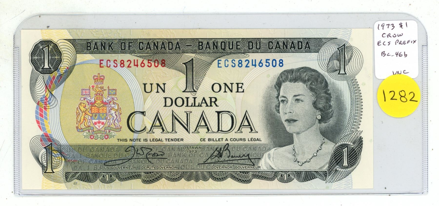 1973 $1. Crow-Bouey signatures. ECS Prefix. BC-46b. Uncirculated.