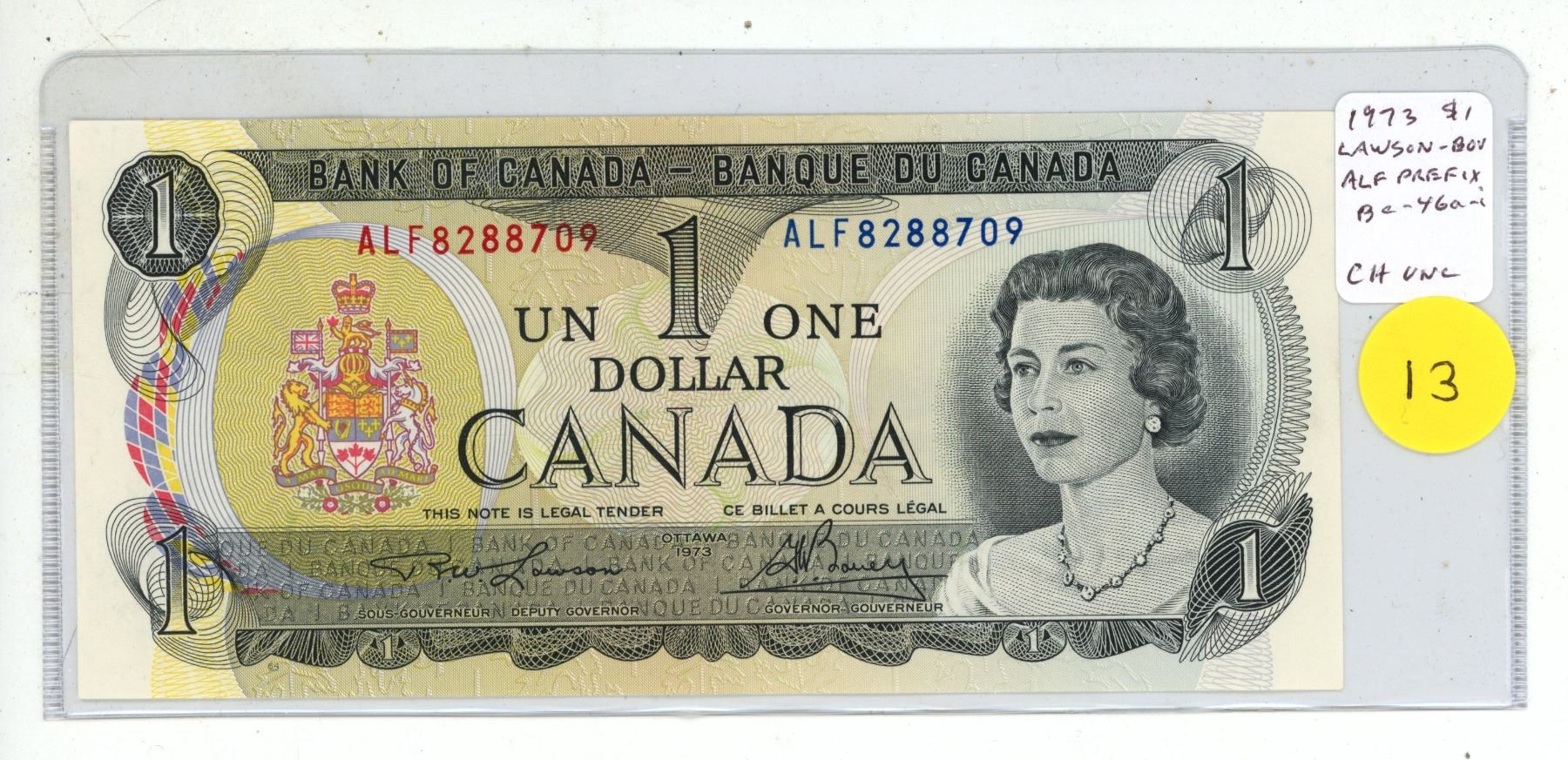 1973 $1. Lawson-Bouey signatures. ALF Prefix. BC-46a-i. Choice Uncirculated.