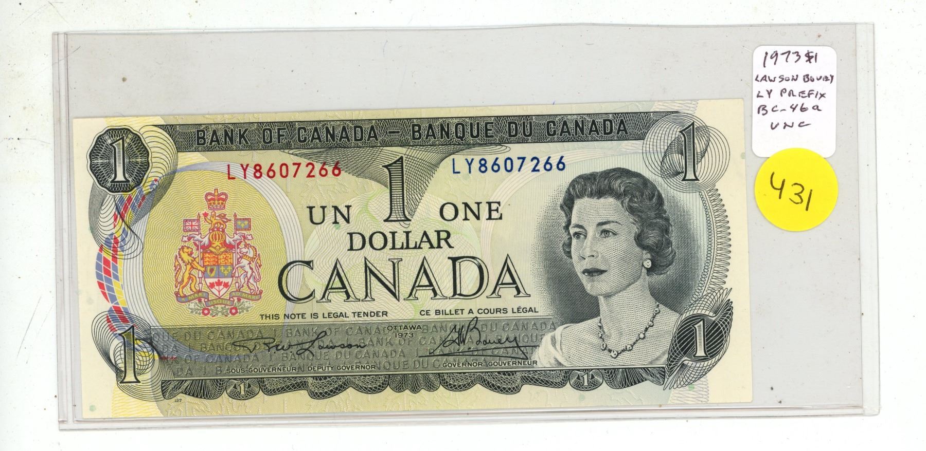 1973 $1. Lawson-Bouey signatures. LY Prefix. BC-46a. Uncirculated.