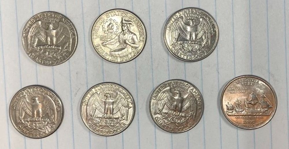 1973, 1976, 1995, 1996, 1998, 2000 United States Twenty-Five Cent Coins x 7