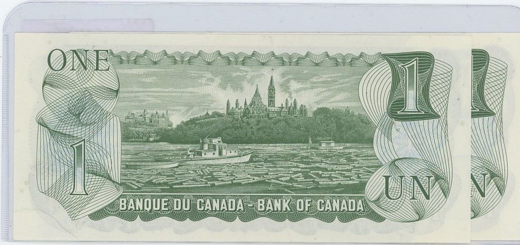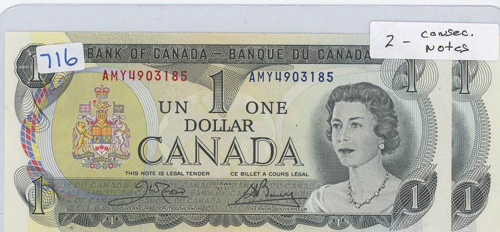 1973 Bank of canada $1.00 Bill Sig. Crow & Bouey 2-Sequencial