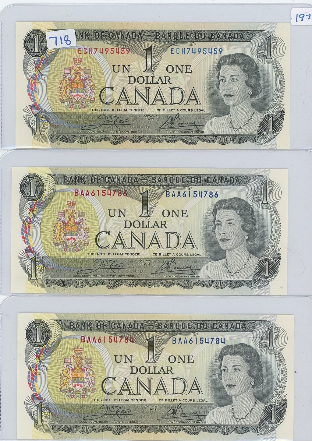 1973 Bank of canada $1.00 Bill Sig. Crow & Bouey Lot of 31