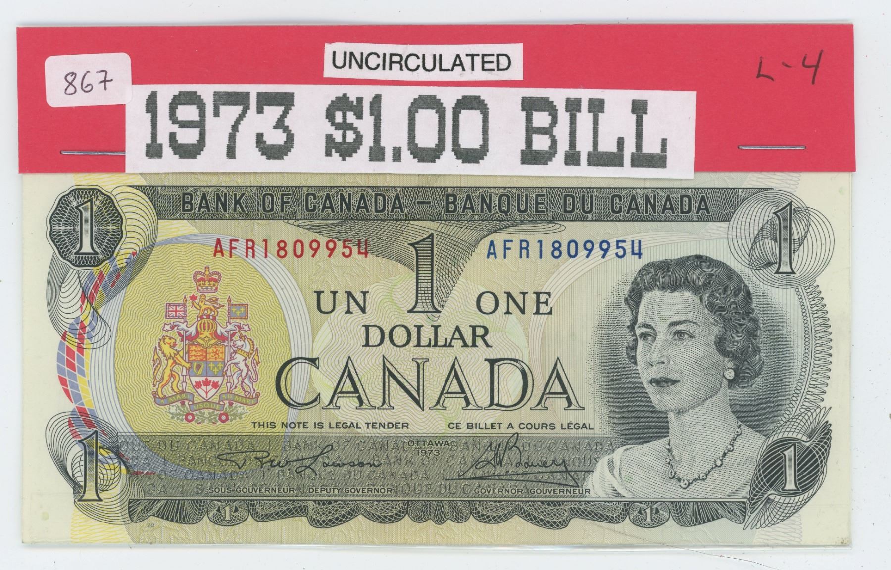 1973 Canadian $1.00 banknote UNC - Last year of issue