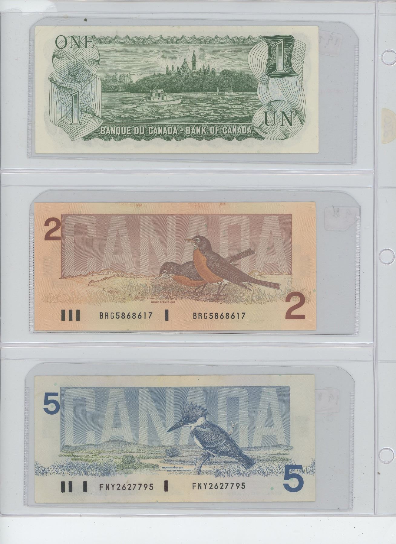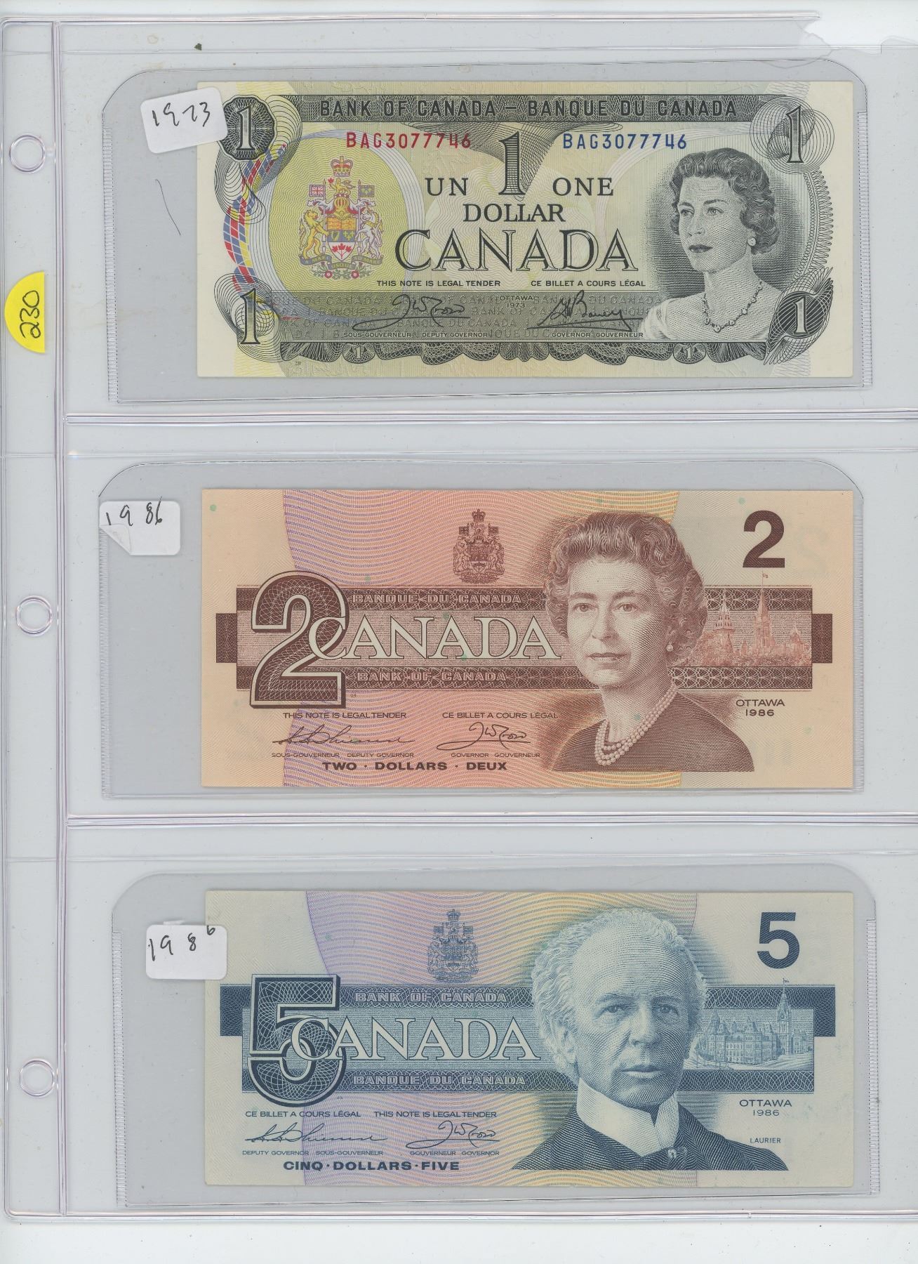 1973 Canadian 1 dollar, 1986 Canadian 2 dollar & 1986 Canadian 5 dollar