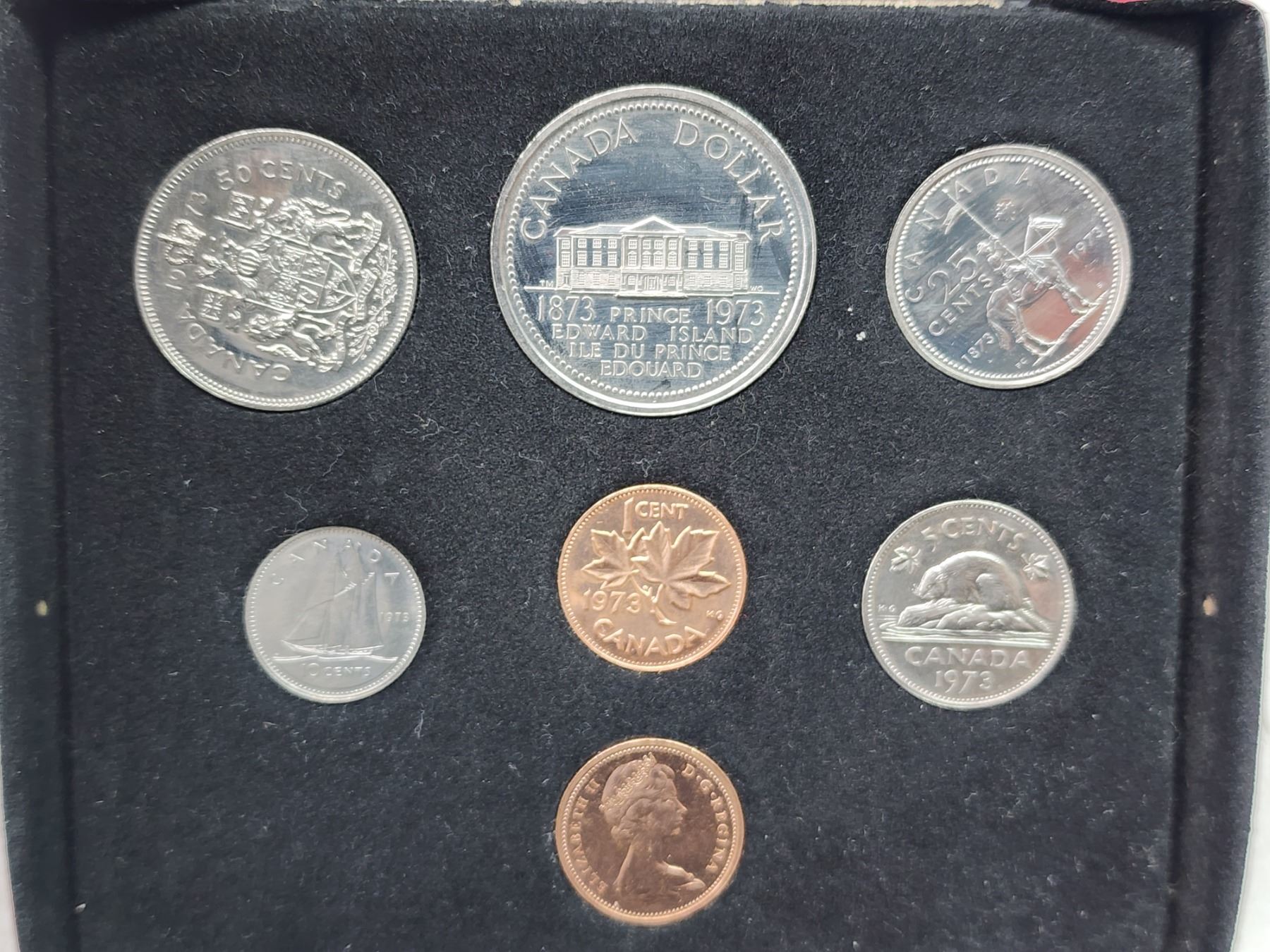 1973 Double penny, P.E.I nickel dollar specimen set, in case