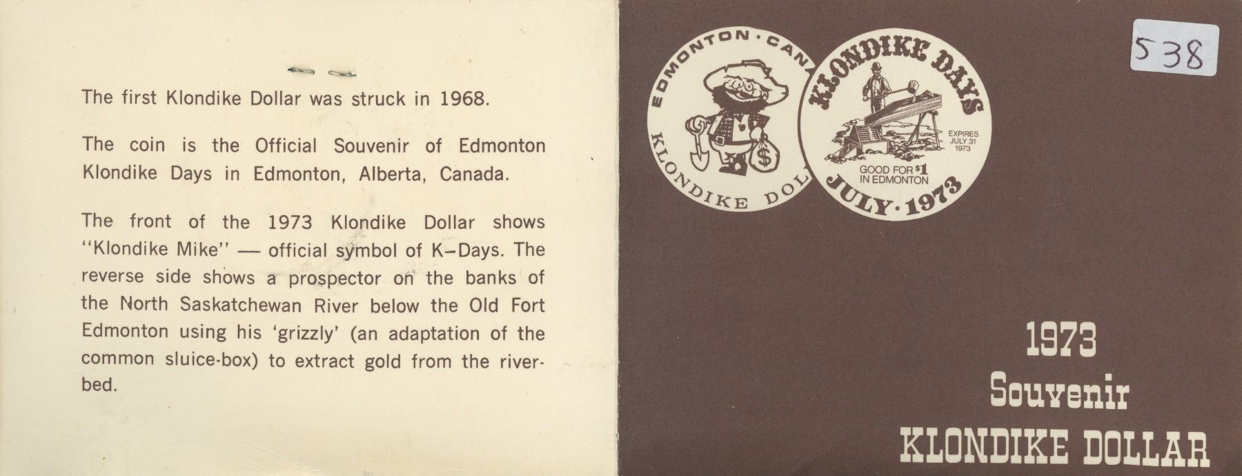 1973 Edmonton Klondike days Dollar in original card,1-coin