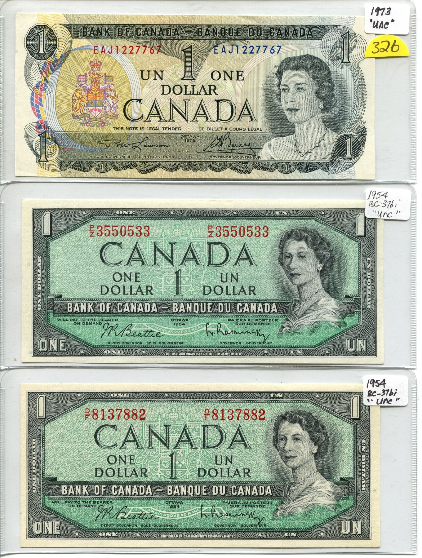 1973 ONE DOLLAR & 2 - 1954 DOLLAS