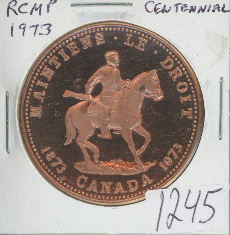 1973 RCMP Centennial Medal. Large Bronze medal. BU. Nice.
