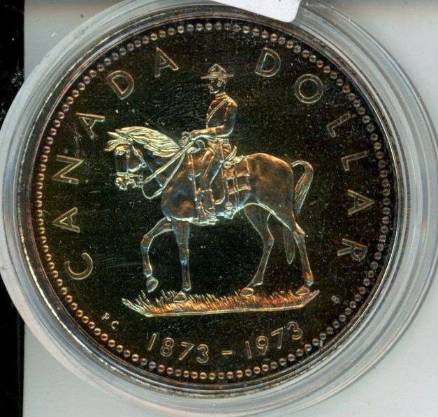 1973 RCMP Centennial Silver Dollar. Specimen-66. Nicely Toned.