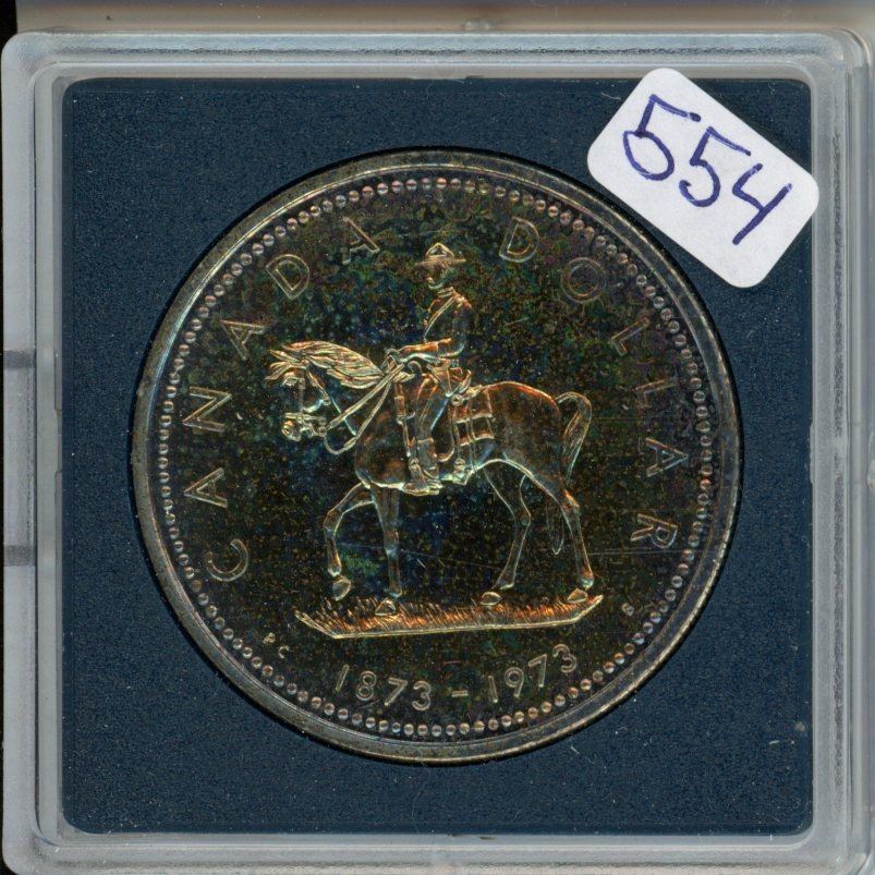 1973 RCMP Centennial Silver Dollar. Specimen. Nicely Toned.