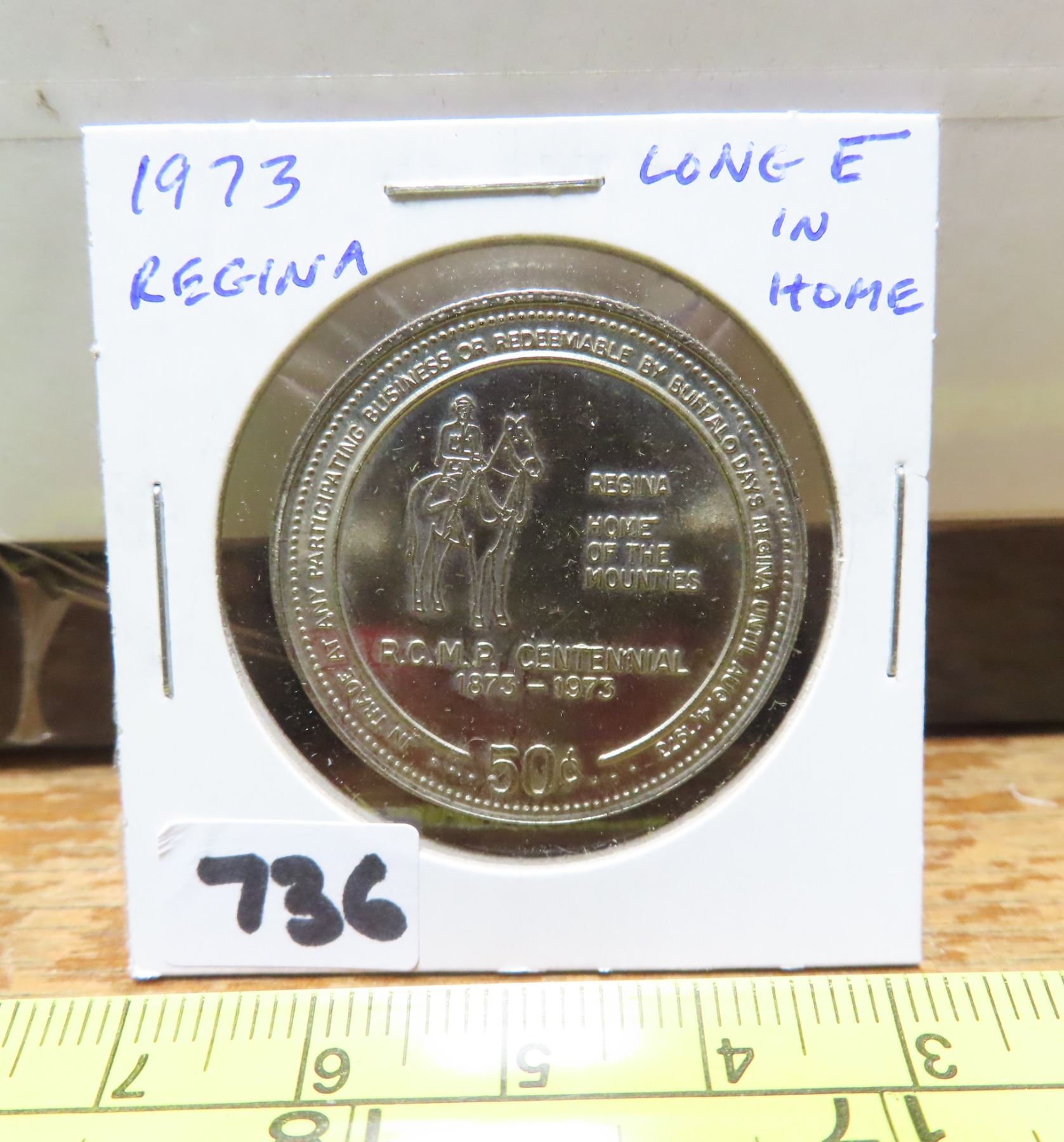 1973 Regina Trade Dollar. Long E in HOME. BU.