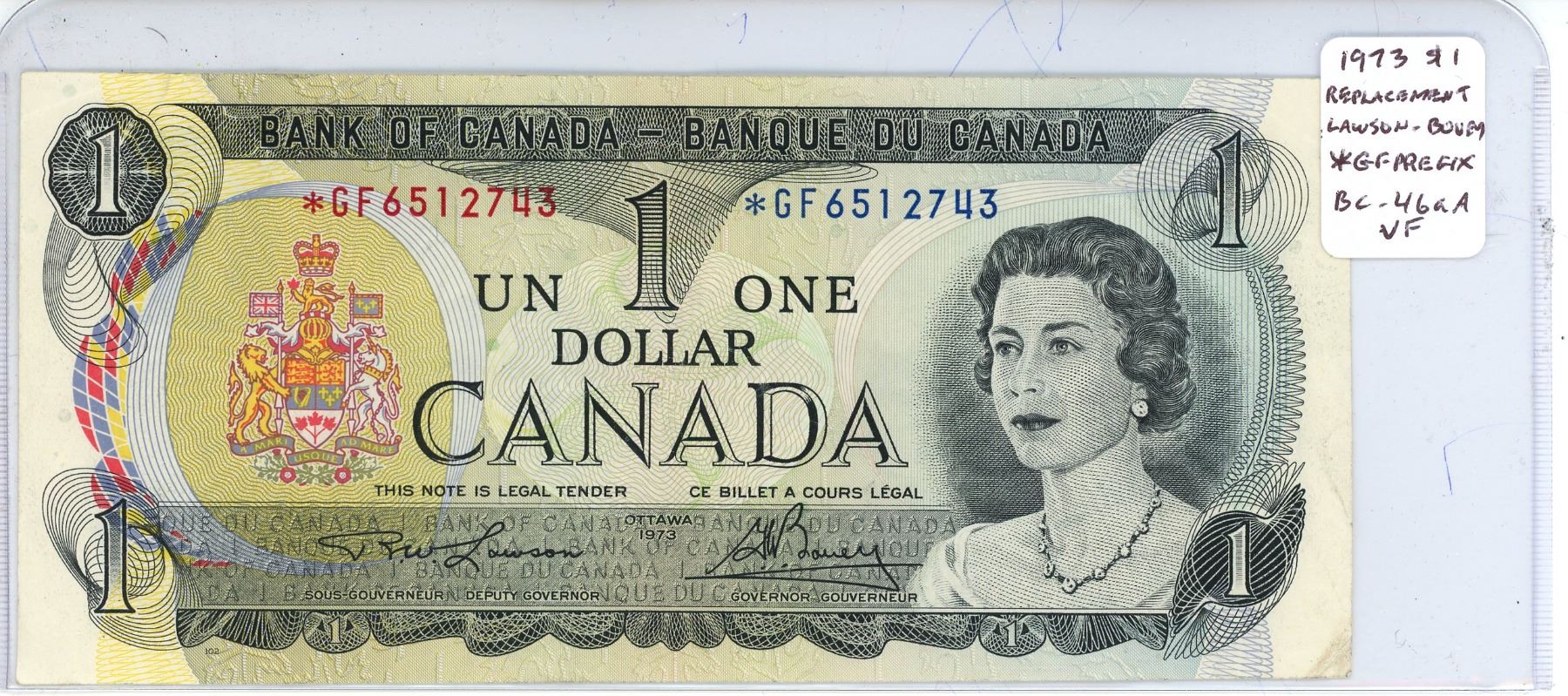 1973 Replacement Lawson Bovey Canadian Dollar Bill
