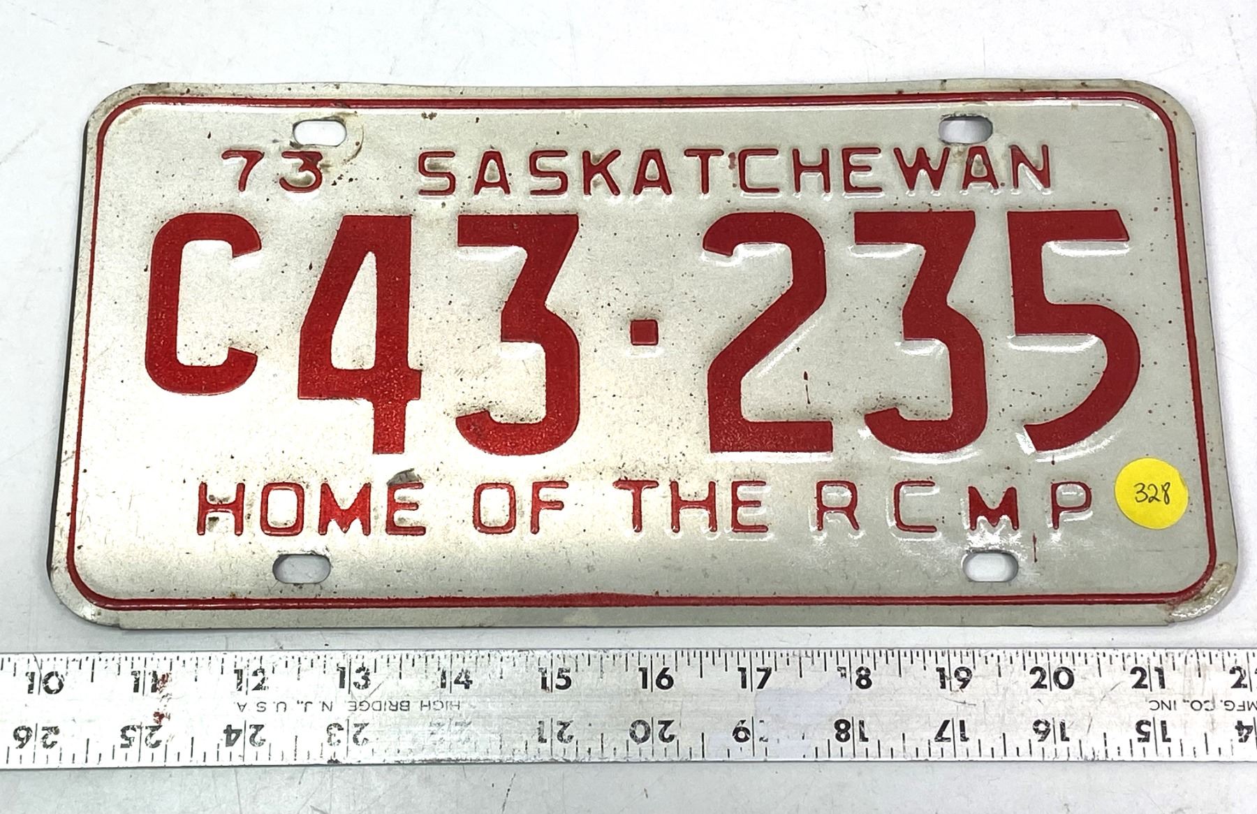 1973 Saskatchewan License Plate C430235 'Home of the RCMP'