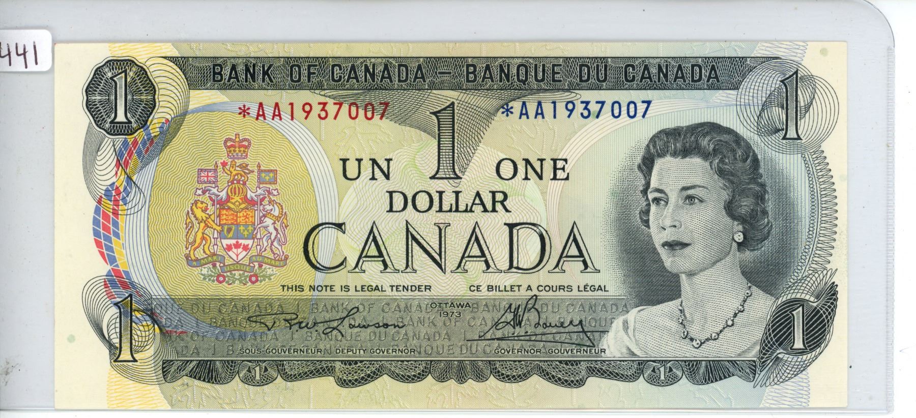 1973 bank of Canada $1 replacement bill-AA1937007