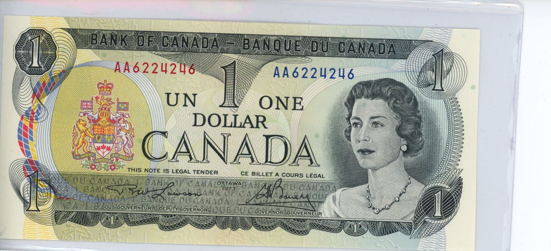 1973 bank of canada 1 dollar bill- AA6224246