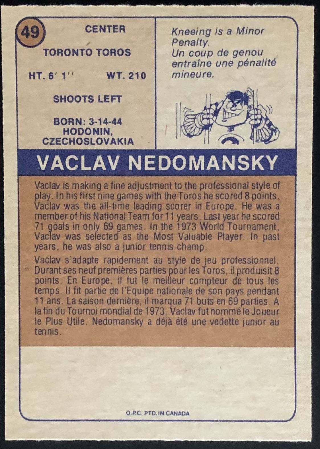 Card #49 hockey, WHA vintage, OPC, hall of fame, rookie