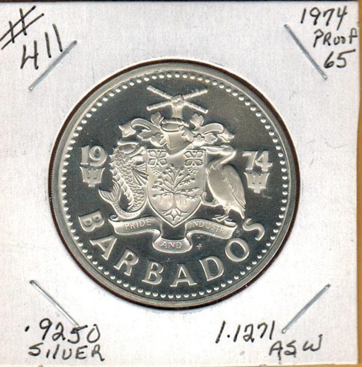 1974 BARBADOS PROOF SILVER $10.00 DOLLARS - .925 Silver - 1.1271 OZ Actual Silver Weight