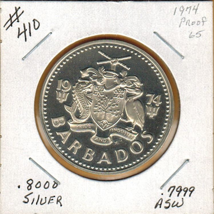1974 BARBADOS PROOF SILVER $5.00 DOLLARS - .800 Silver - .7999 OZ Actual Silver Weight