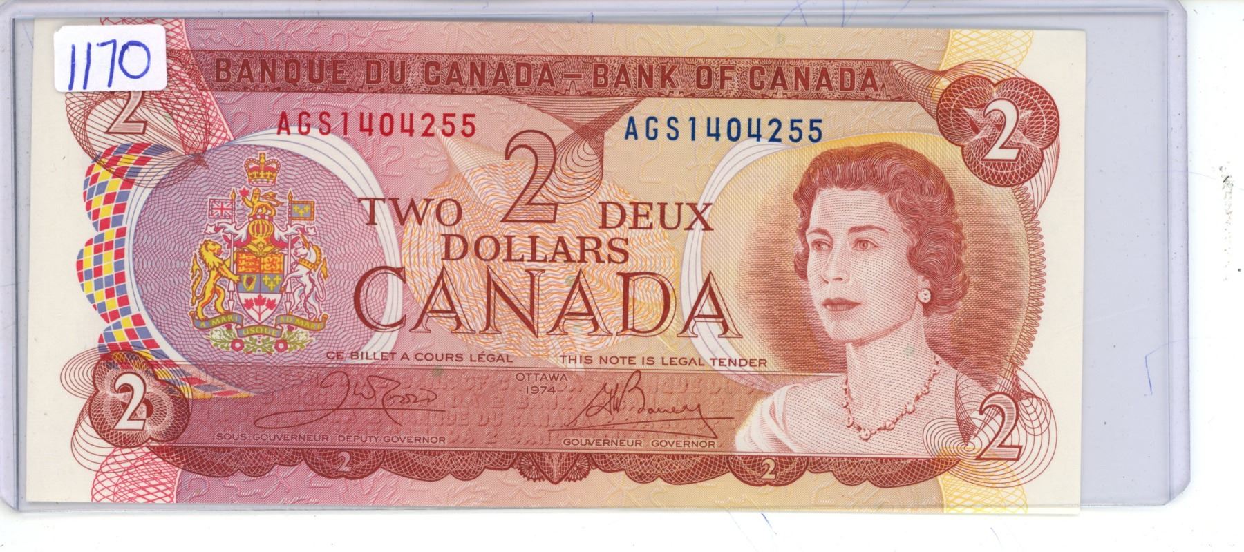 1974 Canadian 2 Dollar Bill -AGIS1404255