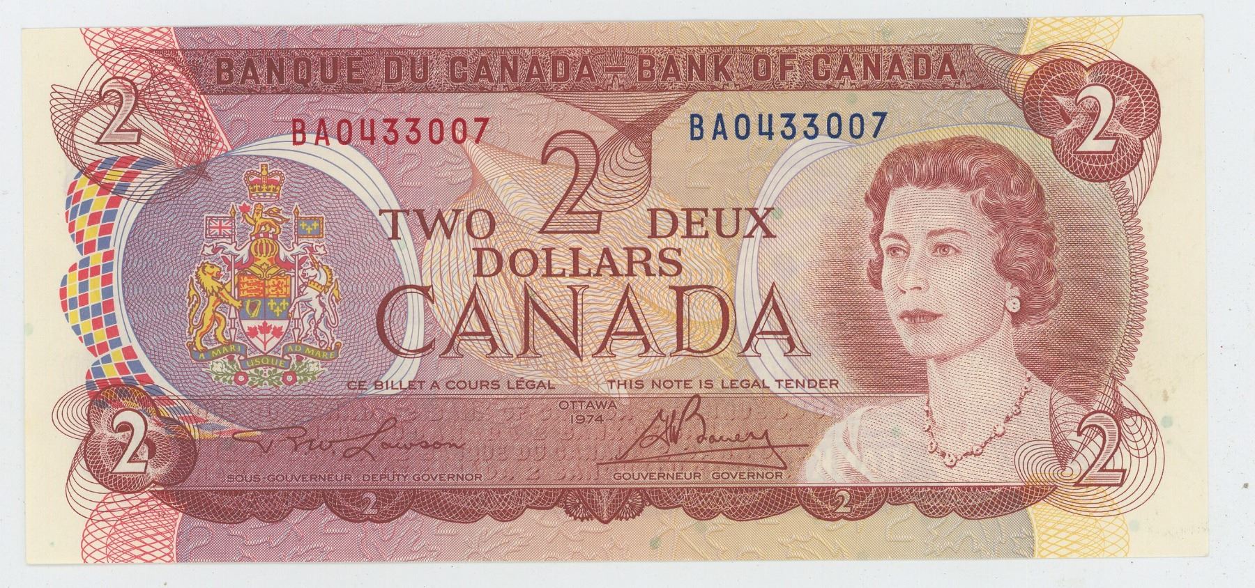 1974 Canadian 2 Dollar Bill