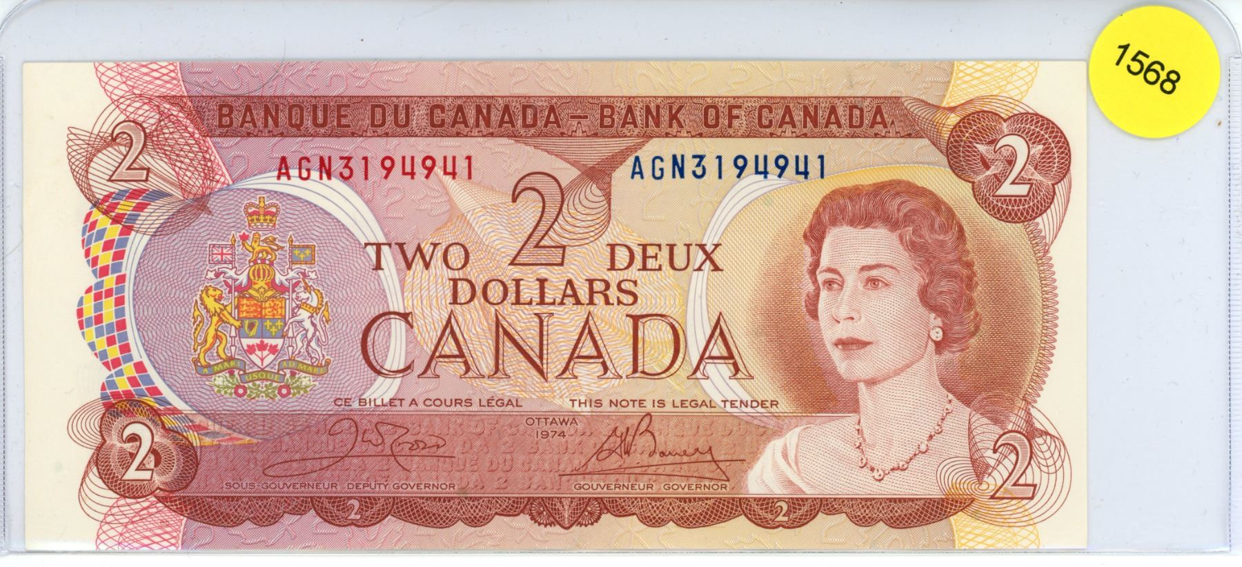 1974 Canadian Two Dollar Bill