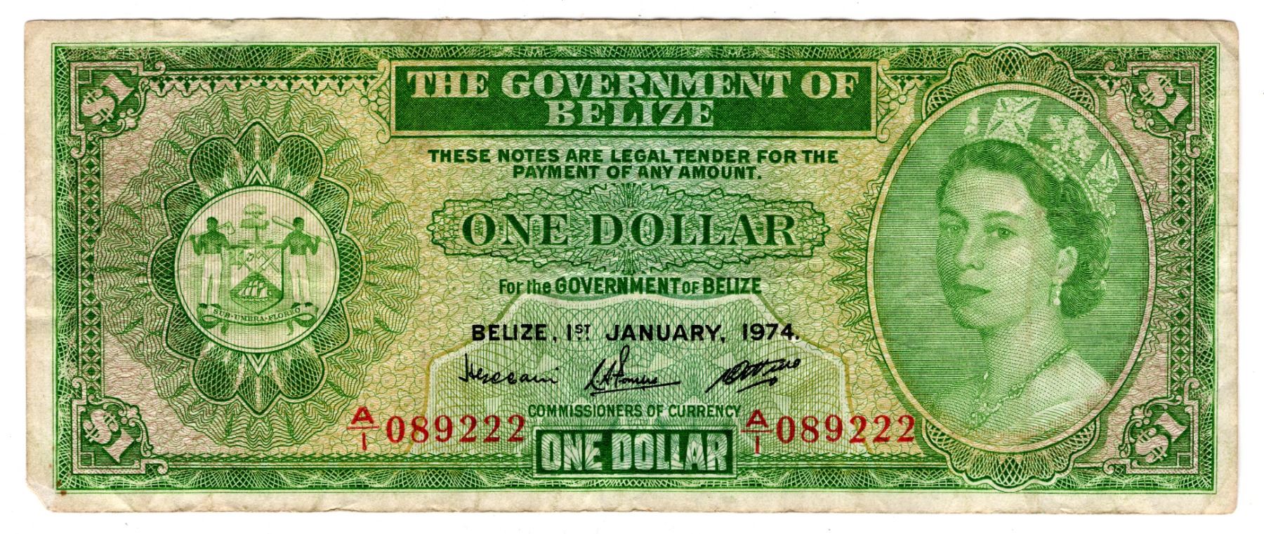 1974 GOVERNMENT OF BELIZE ONE DOLLAR SCARCE