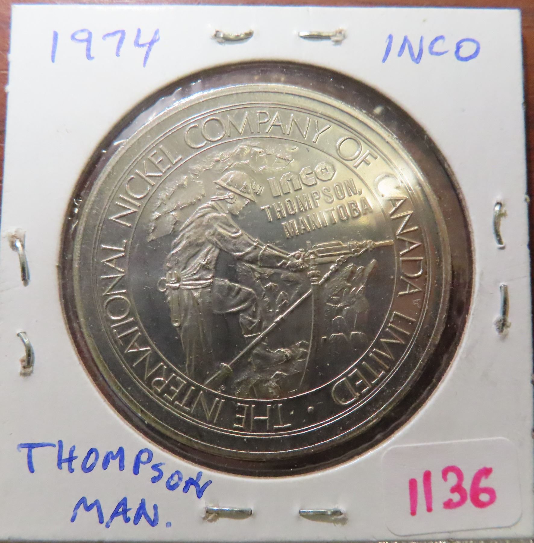 1974 INCO Thompson, Manitoba nickel medal. Commemorates the Centennial of Winnipeg. BU.