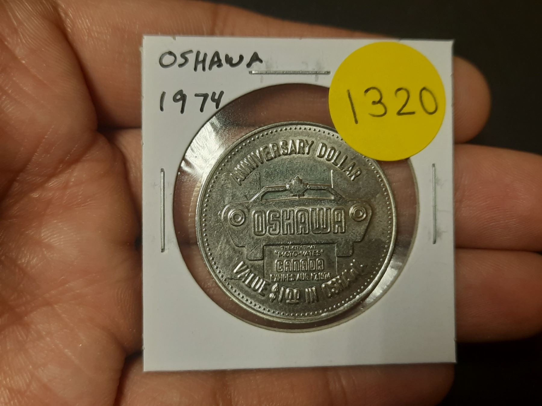1974 Oshawa Ontario Trade Dollar celebrating car manufacturing in Canada. Unc.