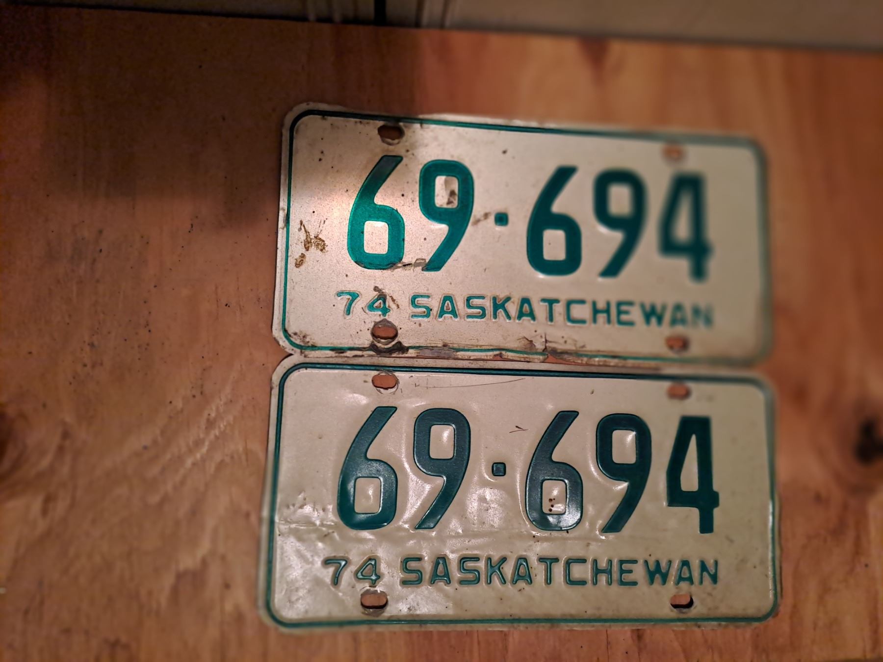 1974 Passenger License Plate 69-694 (PAIR