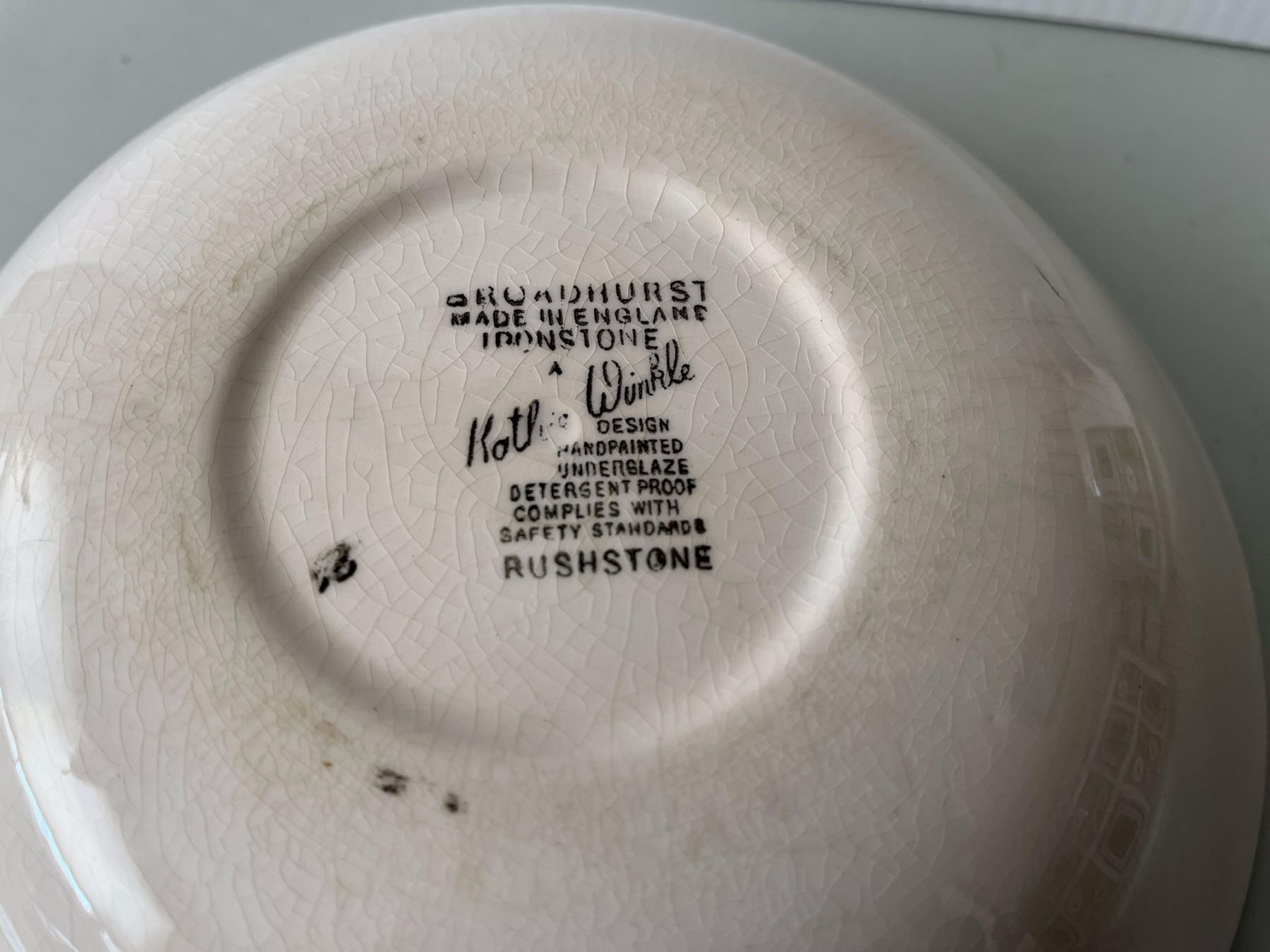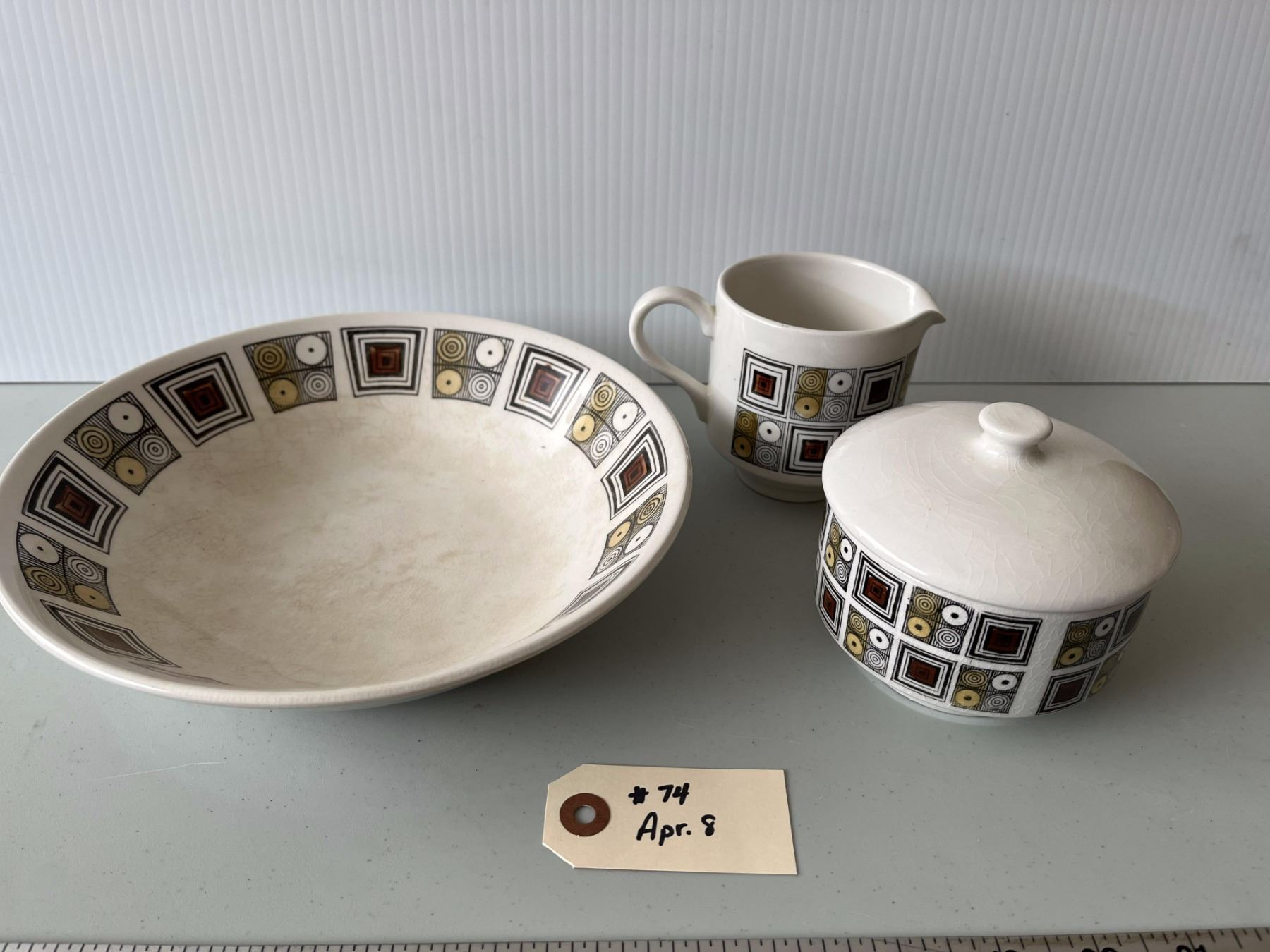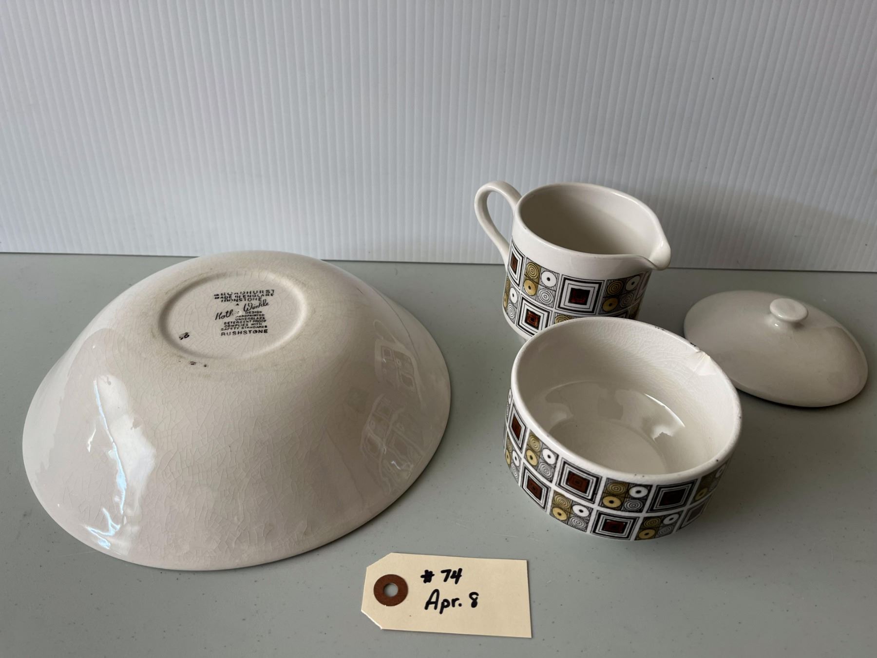 1974 Rushtone serving bowl, cream and sugar (sugar bowl is chipped)