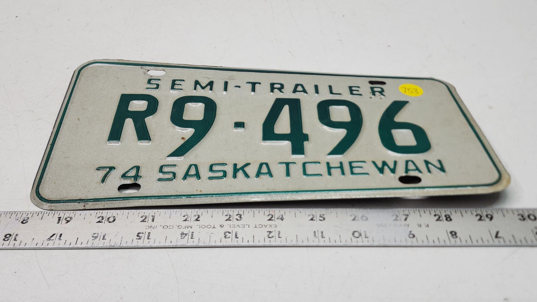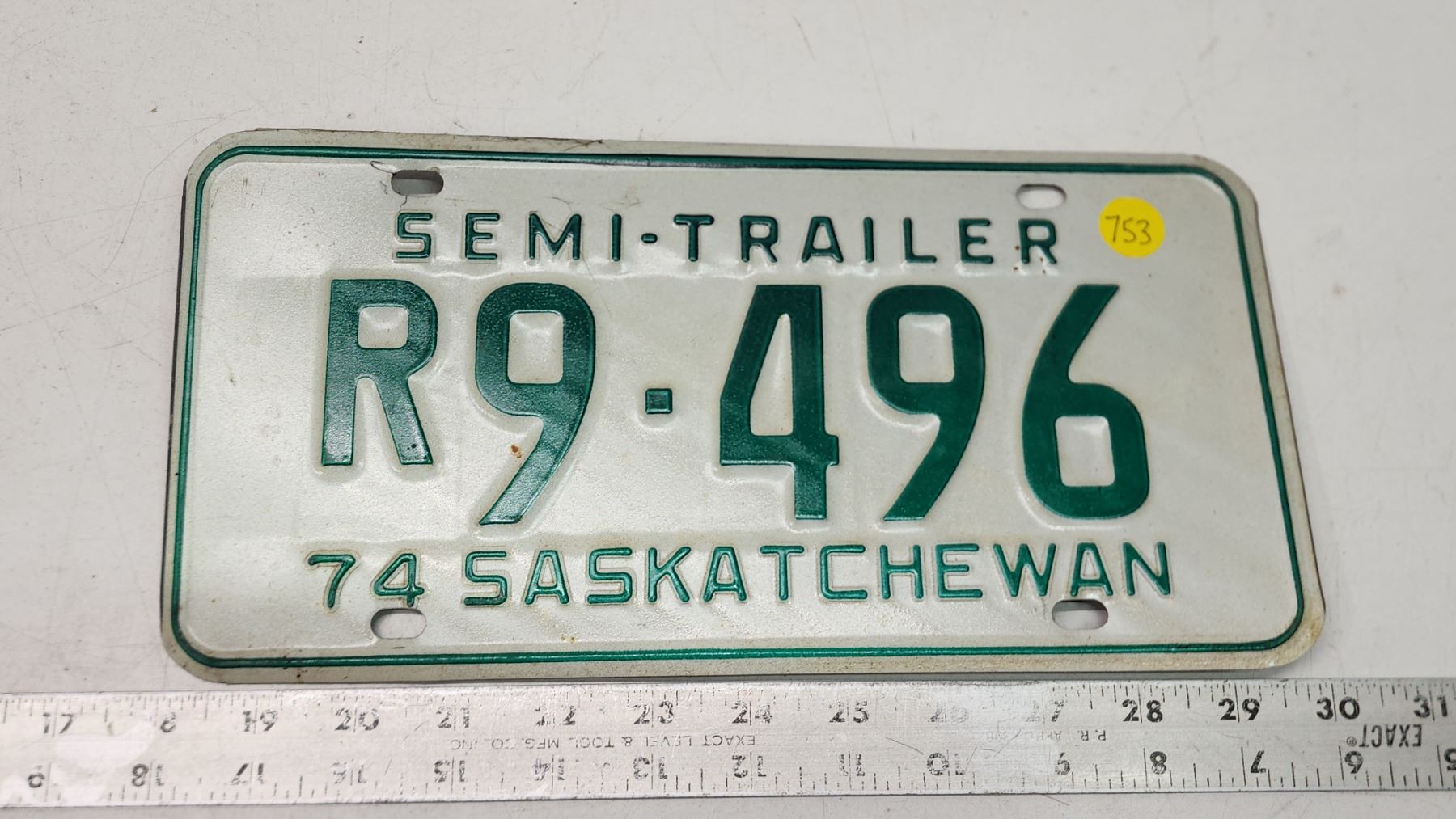 1974 Semi Trailer, Saskatchewan license plate - R 9-496