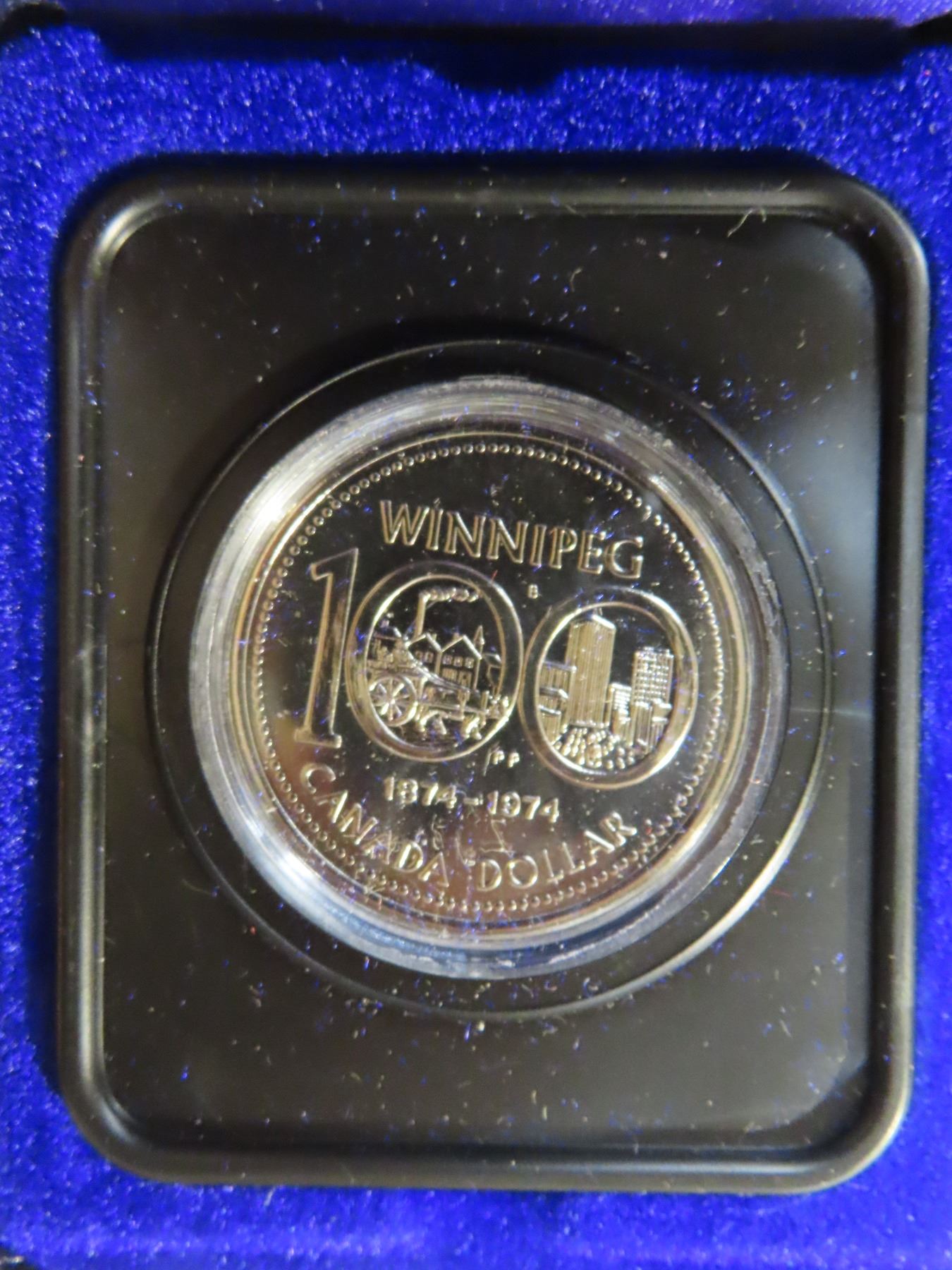 1974 Specimen Nickel Dollar. Commemorates the 100th Anniversary of Winnipeg. Housed in its original Royal Canadian case of issue.