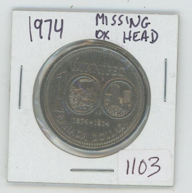 1974 Winnipeg 100 Canada Dollar Coin (Missing OX Head)