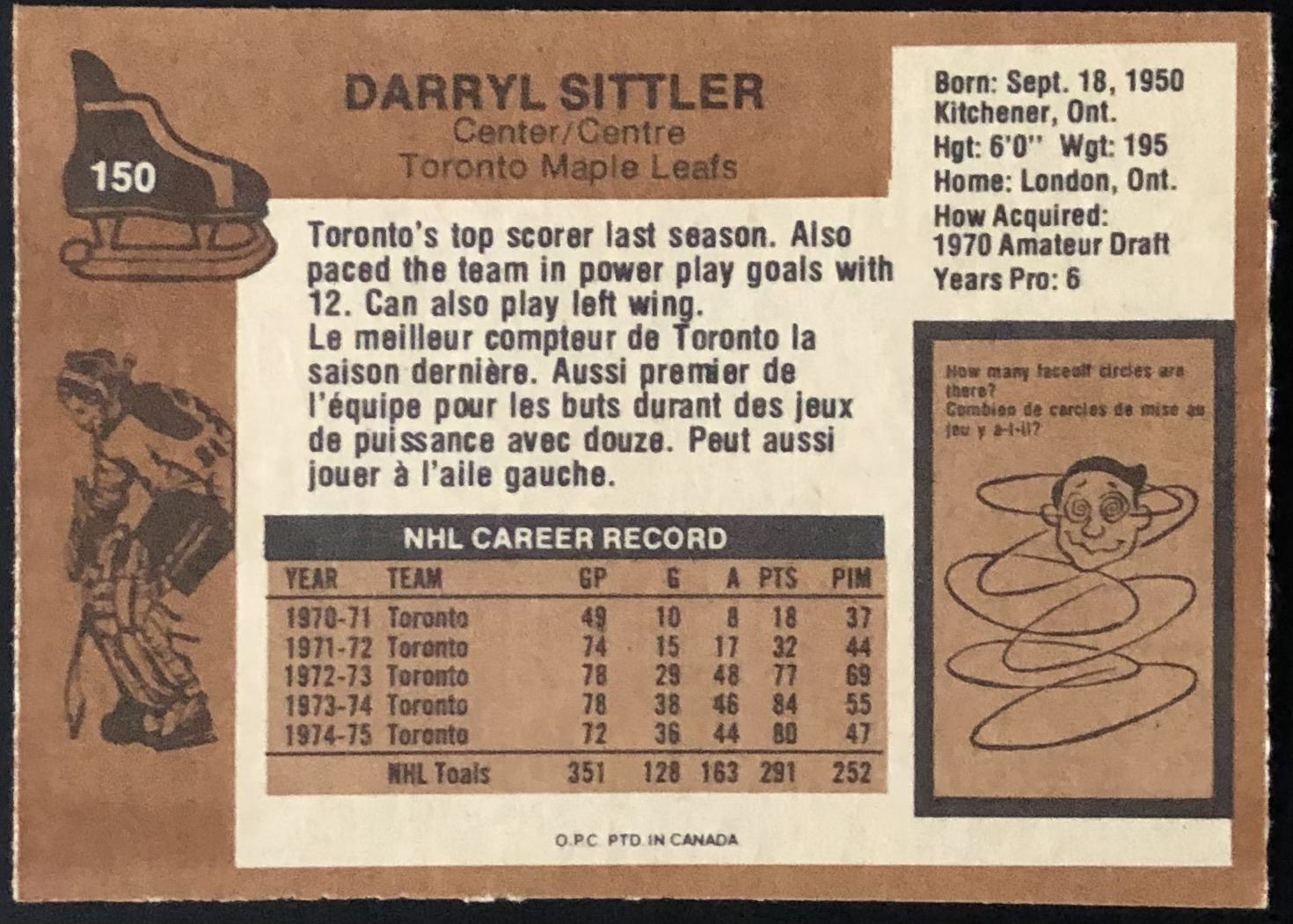 Card #150 hockey, NHL, vintage, OPC, hall of fame