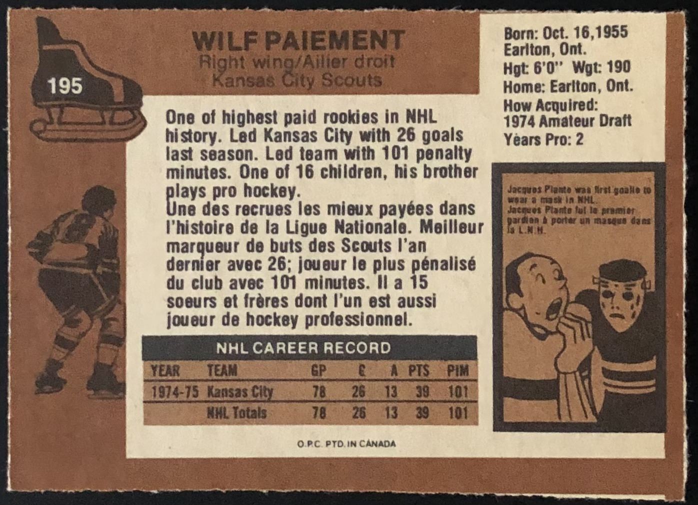 Card #195 hockey, NHL, vintage, OPC, rookie