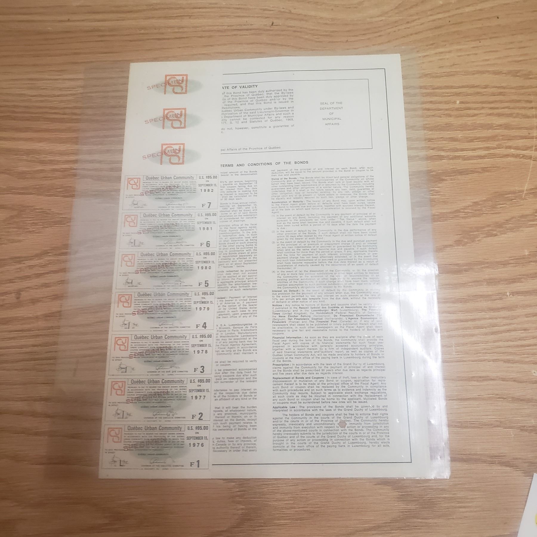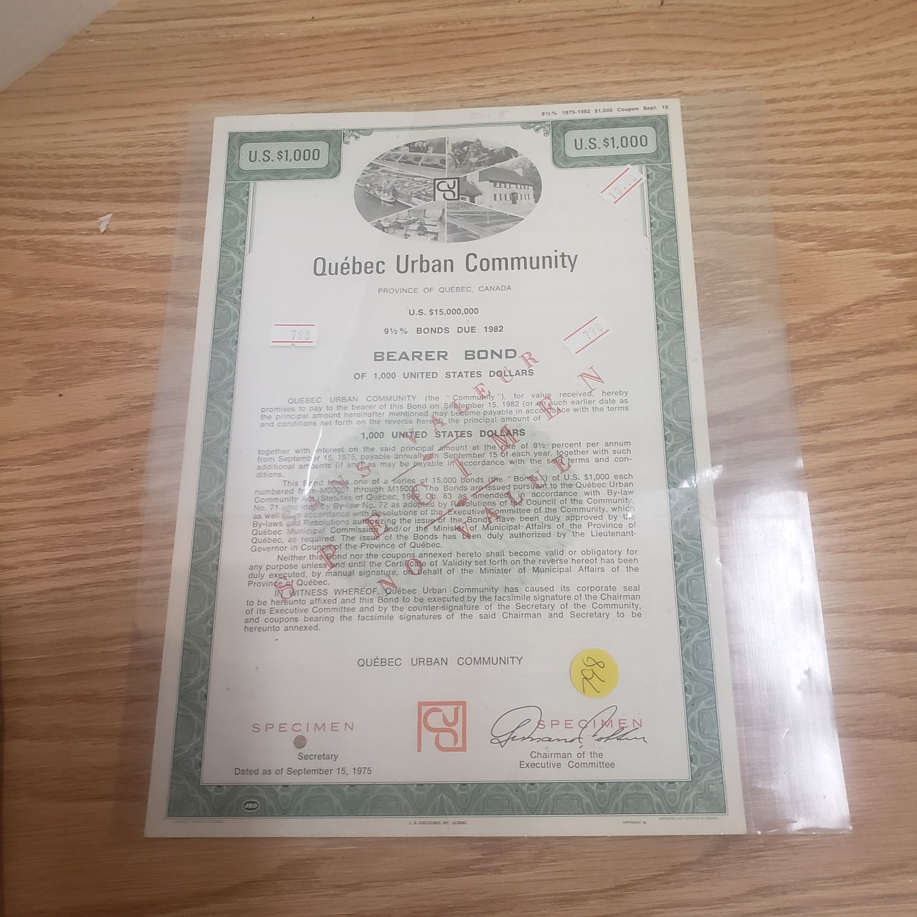 1975 Bearer Bond Purchased by Quebec Urban Community