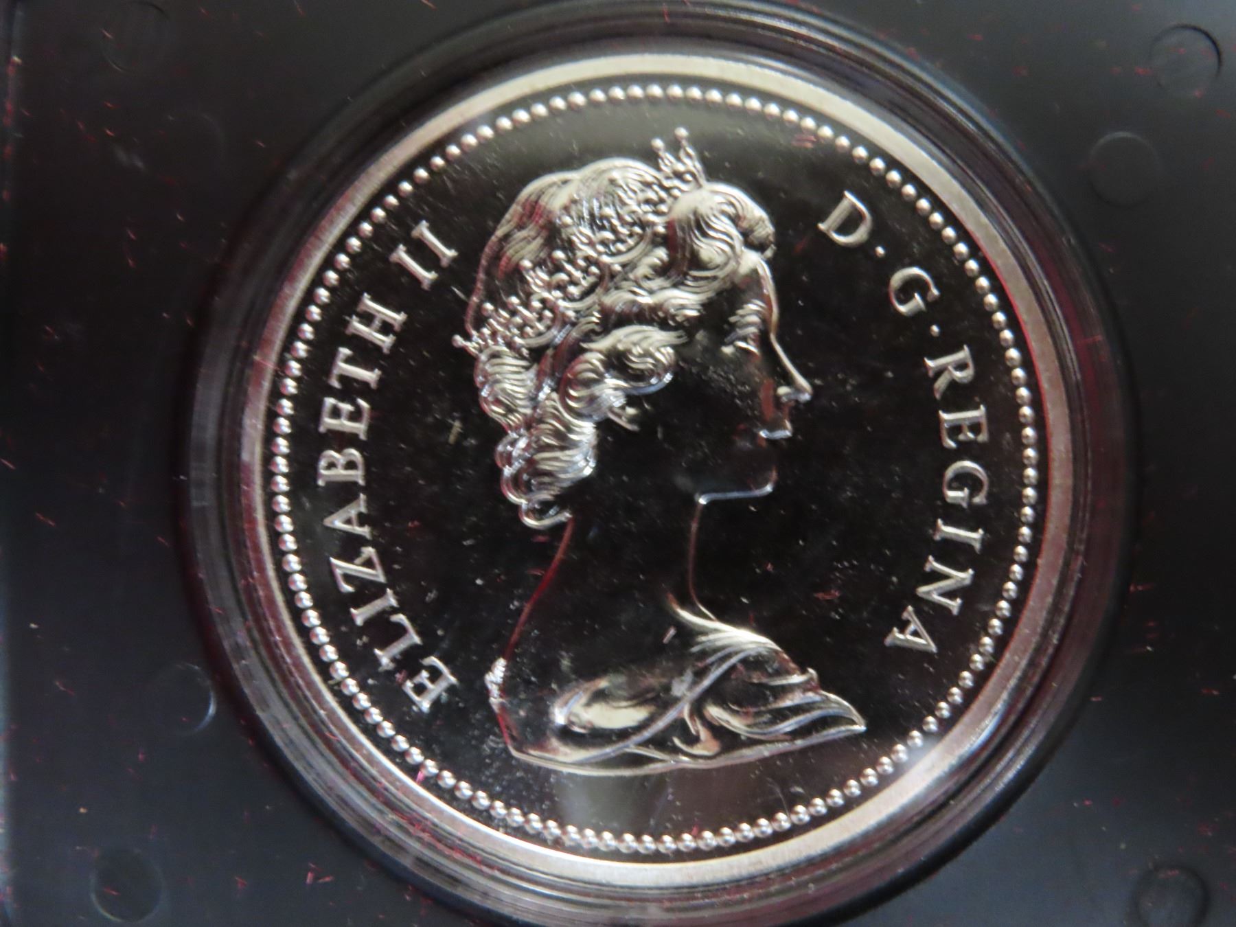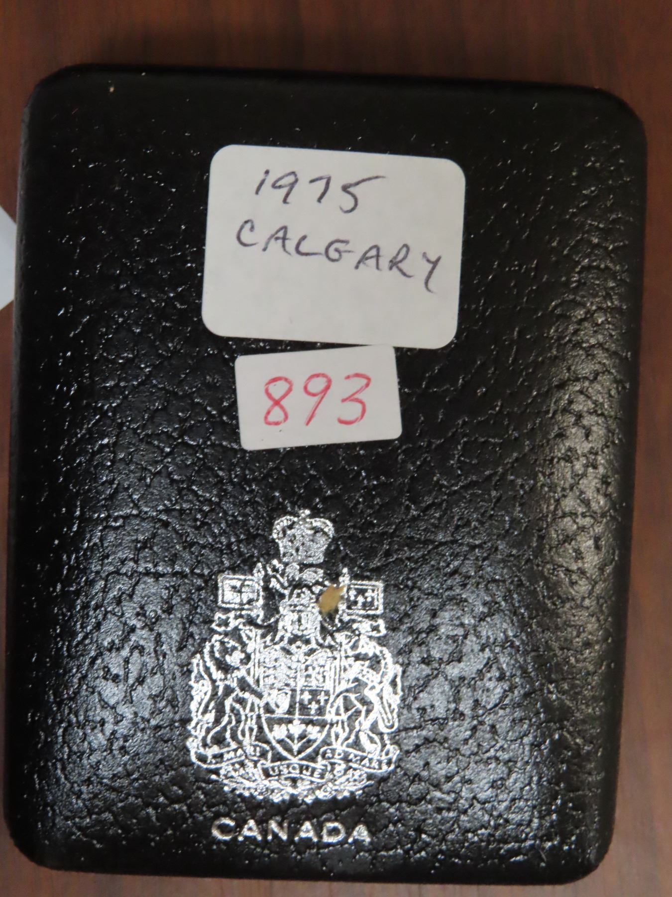1975 Calgary Centennial Specimen Silver Dollar. Bright White. Housed in its original black clamshell case of issue.