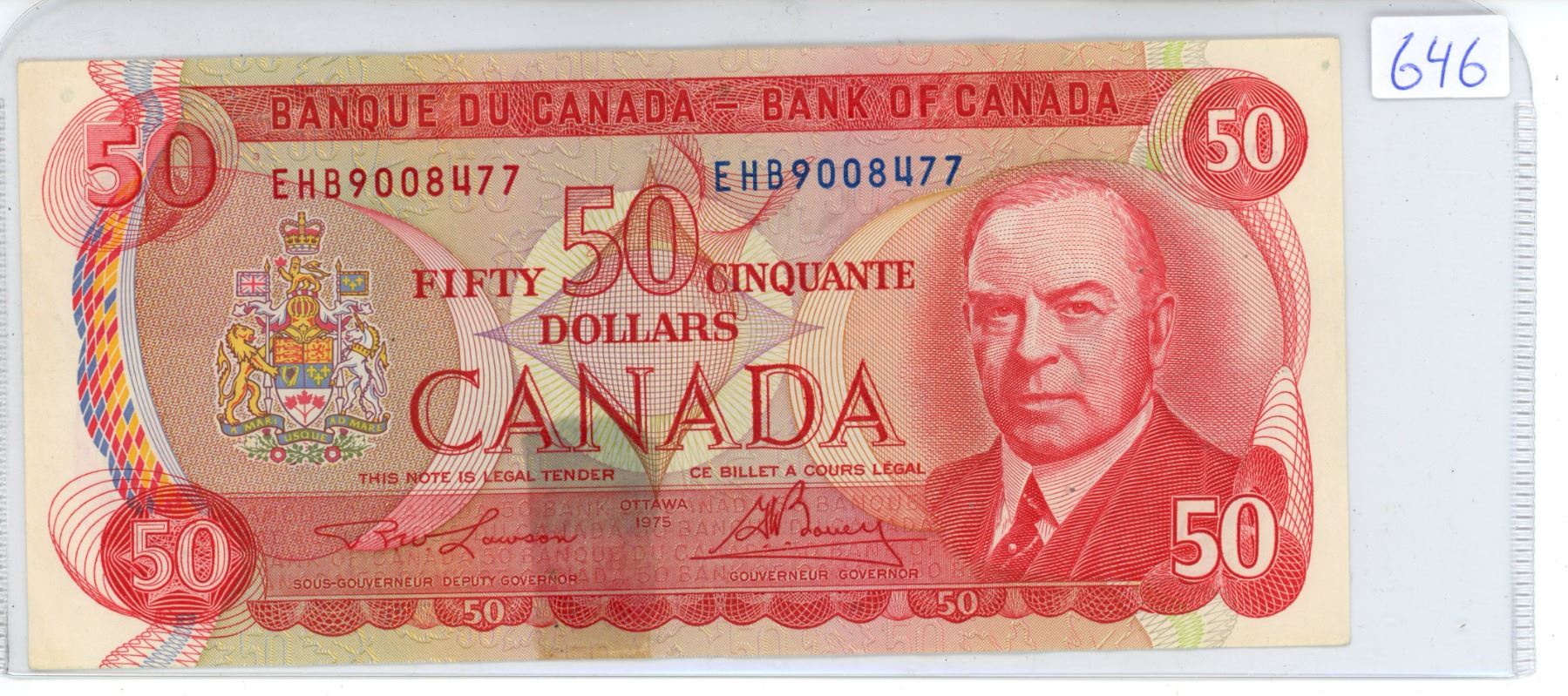 1975 Canadian 50 dollar bill - Lawson/Bouey - Prefix EHB 9008477
