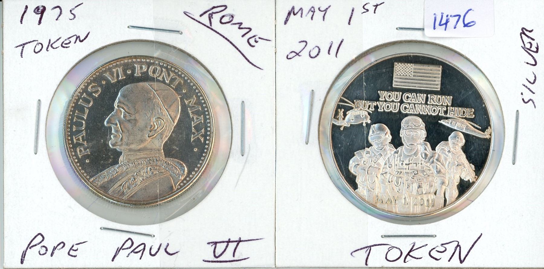 1975 Roman Pope Paul VI Token & U.S.A 2011 May 1st Token